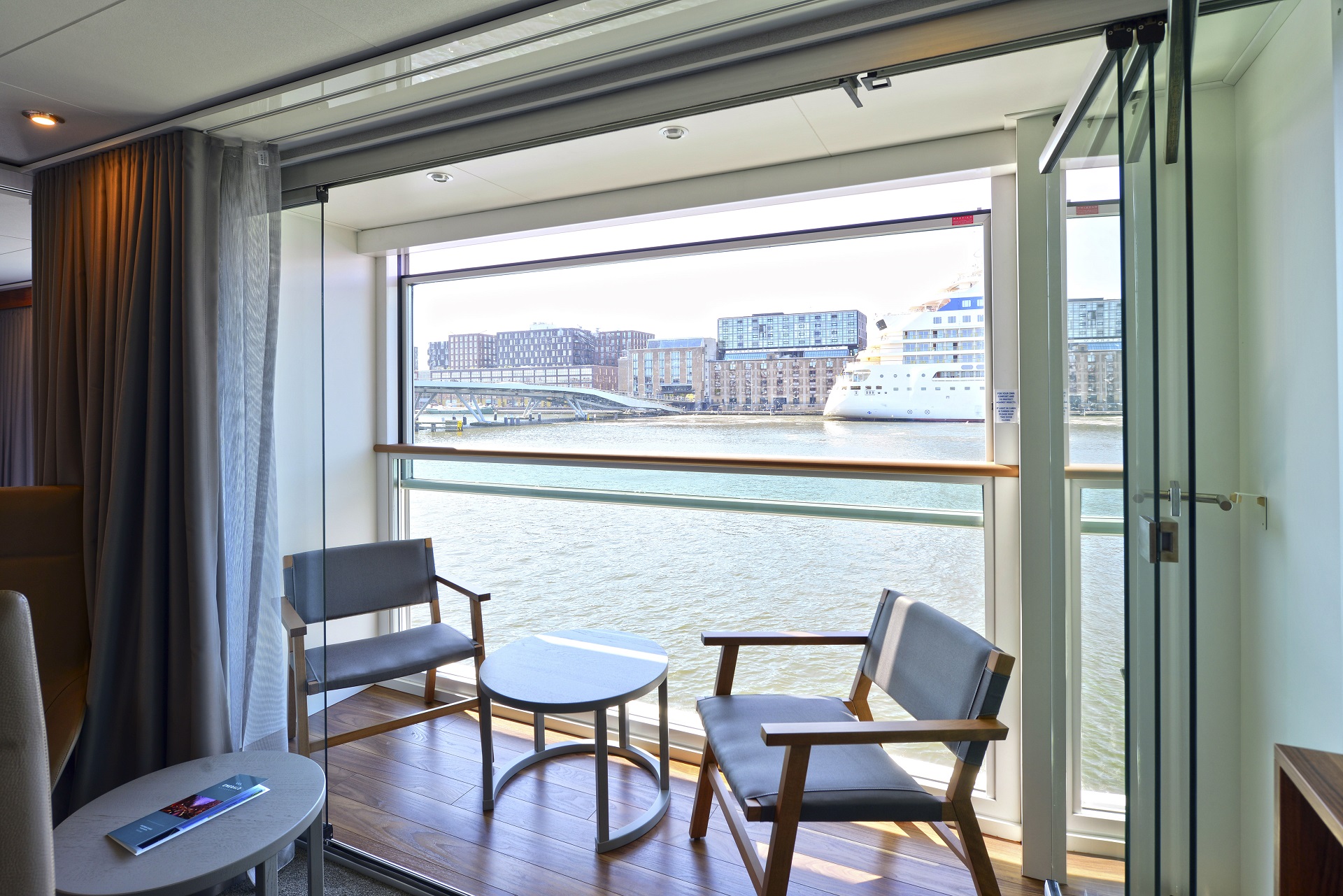 The Emerald Dawn is characterised by its ingenious balcony systems that give it its unique look. The MethermoXL vertical sliding windows, installed in all suites and passenger cabins, create a balustrade when opened and offer an incredible view when closed. Thanks to the unique sliding direction, no cabin space is lost and it offers the passengers the possibility to create their own outside space entirely to their liking.