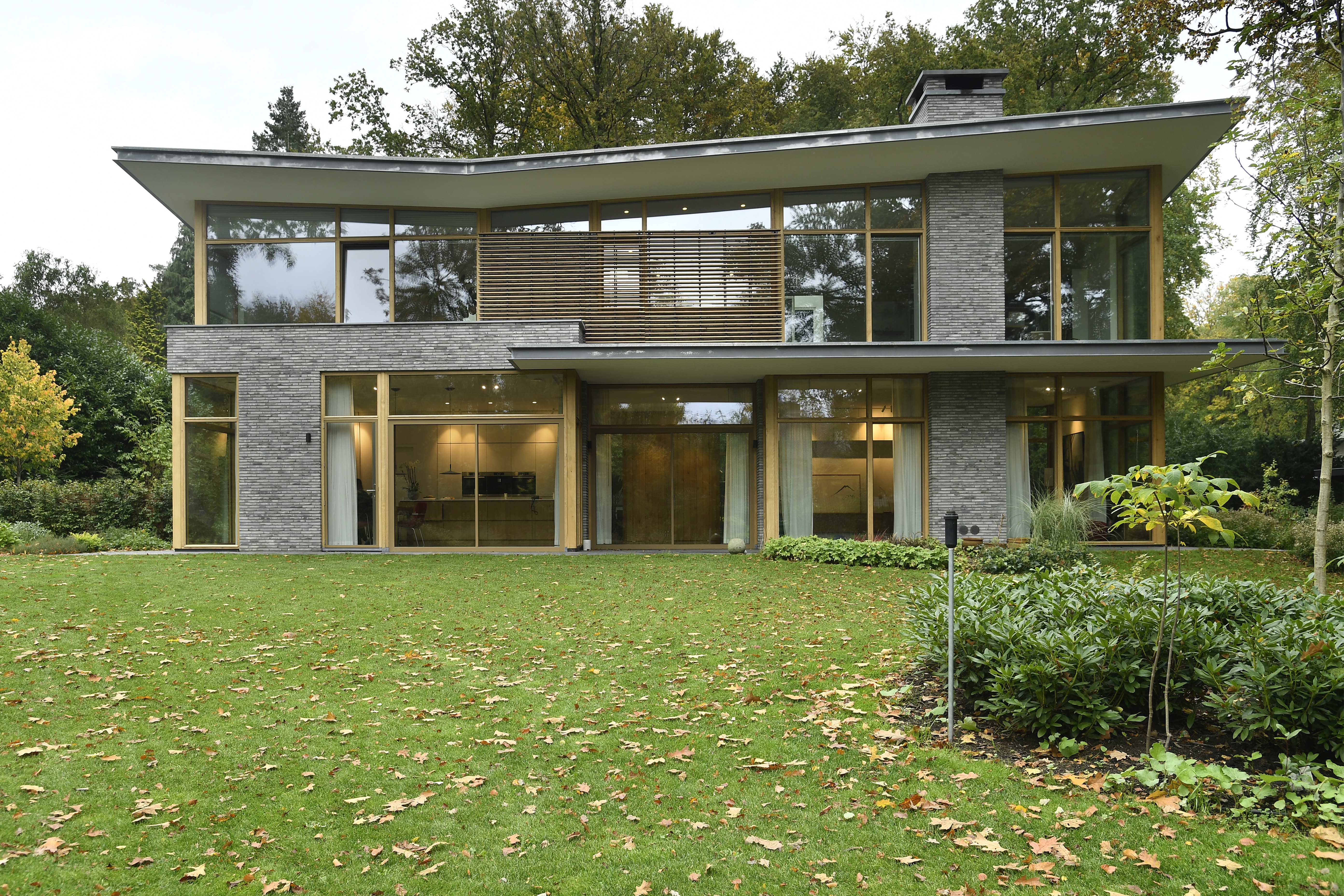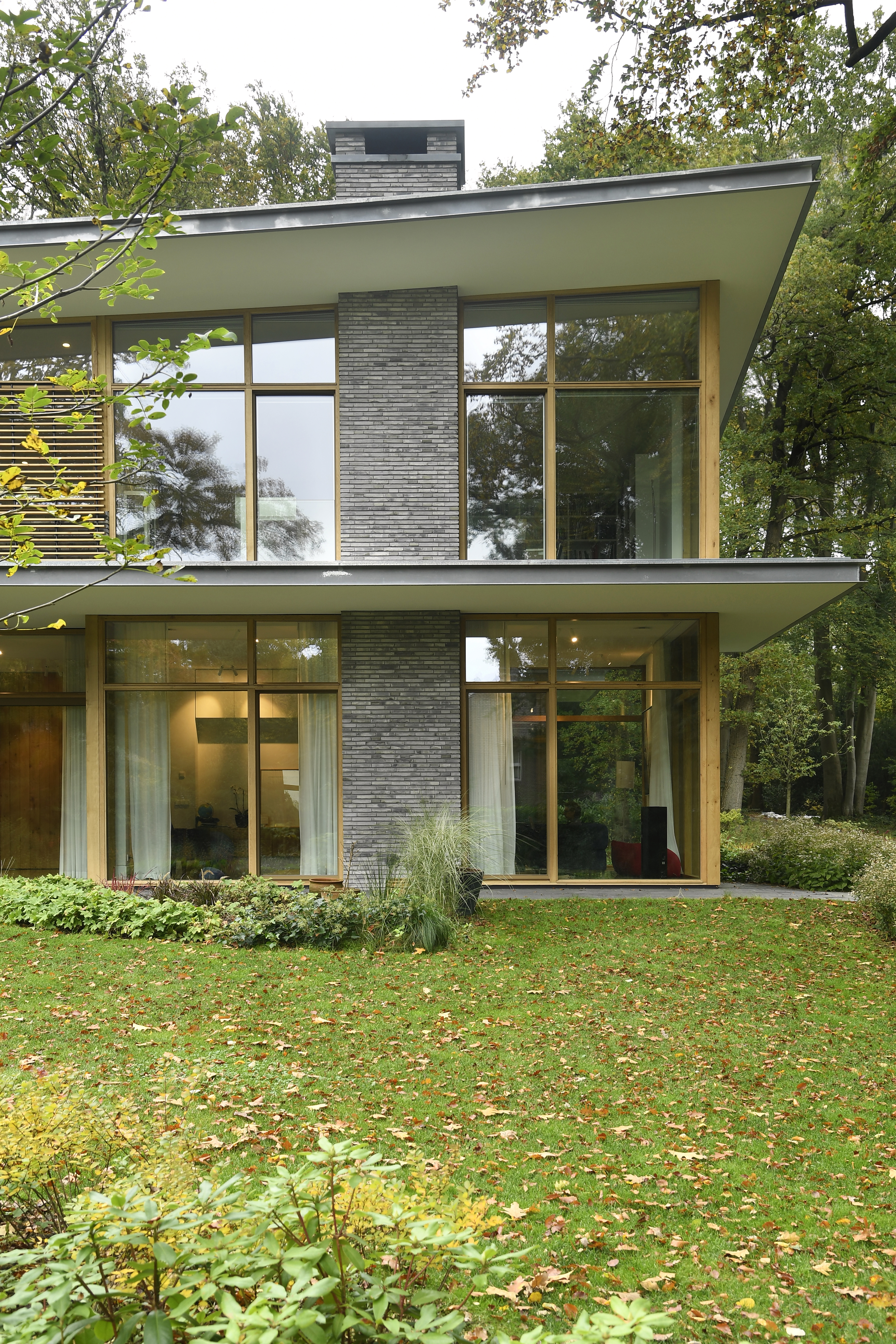 Bijna iedere ruimte heeft namelijk aan vier zijden glas en zijn als de vleugels van een vlinders ten opzicht van elkaar zijn gepositioneerd. Toch zijn aan de buitenzijde deze verspringingen subtiel waarneembaar. Door de materialisatie en het lijnenspel oogt de villa – met het asymmetrische dak - zelfs bijna symmetrisch. Dat komt omdat de blik getrokken wordt naar de centrale geveldelen; de houten lambrisering op de verdieping aan de achterzijde en de entree met trappenhuis aan de voorkant.