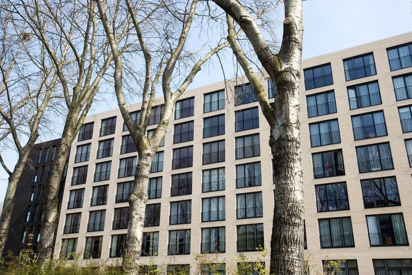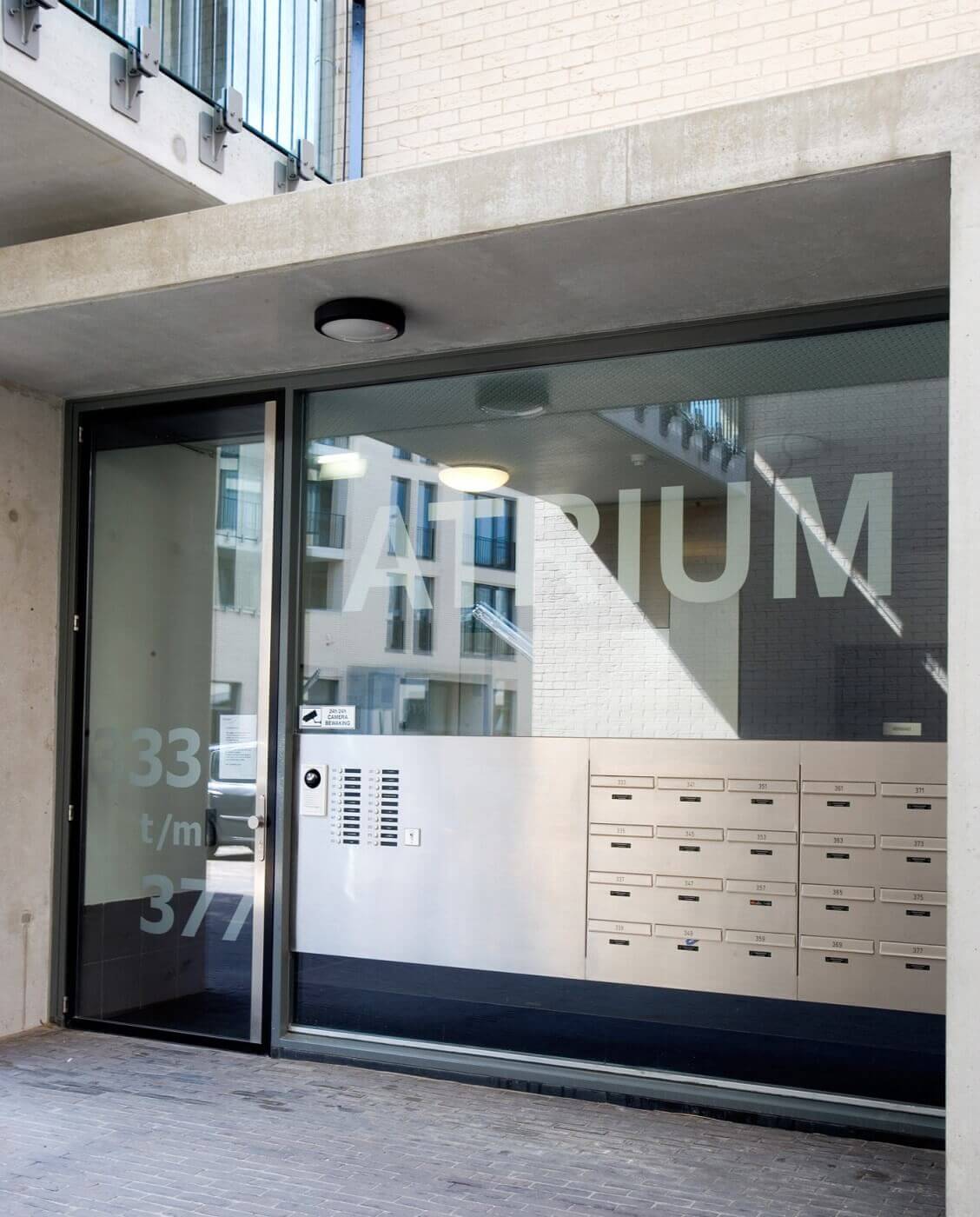 In het ontwerp ontstond ruimte voor een aantal binnengebieden die allemaal hun eigen sfeer hebben. Zo is er een groen pleintje met zicht op de omringende natuur en een plek waar je het aangrenzende water van de Lage Wetering kunt zien. Op verschillende plaatsen is er uitzicht op de bebouwing van het oude dorp Zoetermeer. En er is een levendig, bijna ‘stedelijk’ plein waar veel voorzieningen zijn samengebracht, zoals een gezondheidscentrum met huisartsenpraktijk, apotheekvoorziening, fysio- en oefentherapiepraktijk, maatschappelijk werk en kinderopvang. De vier gebouwen die dit plein vrijwel omsluiten, zijn via galerijen met elkaar verbonden. Verrelst: ‘De opdrachtgever voorzag een aantal categorieën woningen al naar gelang de zorgbehoeften. De galerijen maken het mogelijk dat zorgverleners kunnen werken vanuit een centraal punt en snel van gebouw naar gebouw kunnen.’ maar met dunbedmortel in dezelfde kleur gemetseld. Daardoor komen de kleuren extra mooi uit, zeker als de zon er op staat. Verbindende factoren zijn ook de opvallende betonnen portiek van elk gebouw en zeker de verdiepingshoge ramen. Wij stellen ze vaak voor en komen dan eigenlijk als vanzelf uit bij Metaglas. In houten kozijnen met houten draaiende delen zijn zulke hoge ramen nauwelijks mogelijk en zie je vooral veel hout. De aluminium omkadering die we hier hebben gekozen, zorgt voor maximale transparantie. Precies wat we willen.’