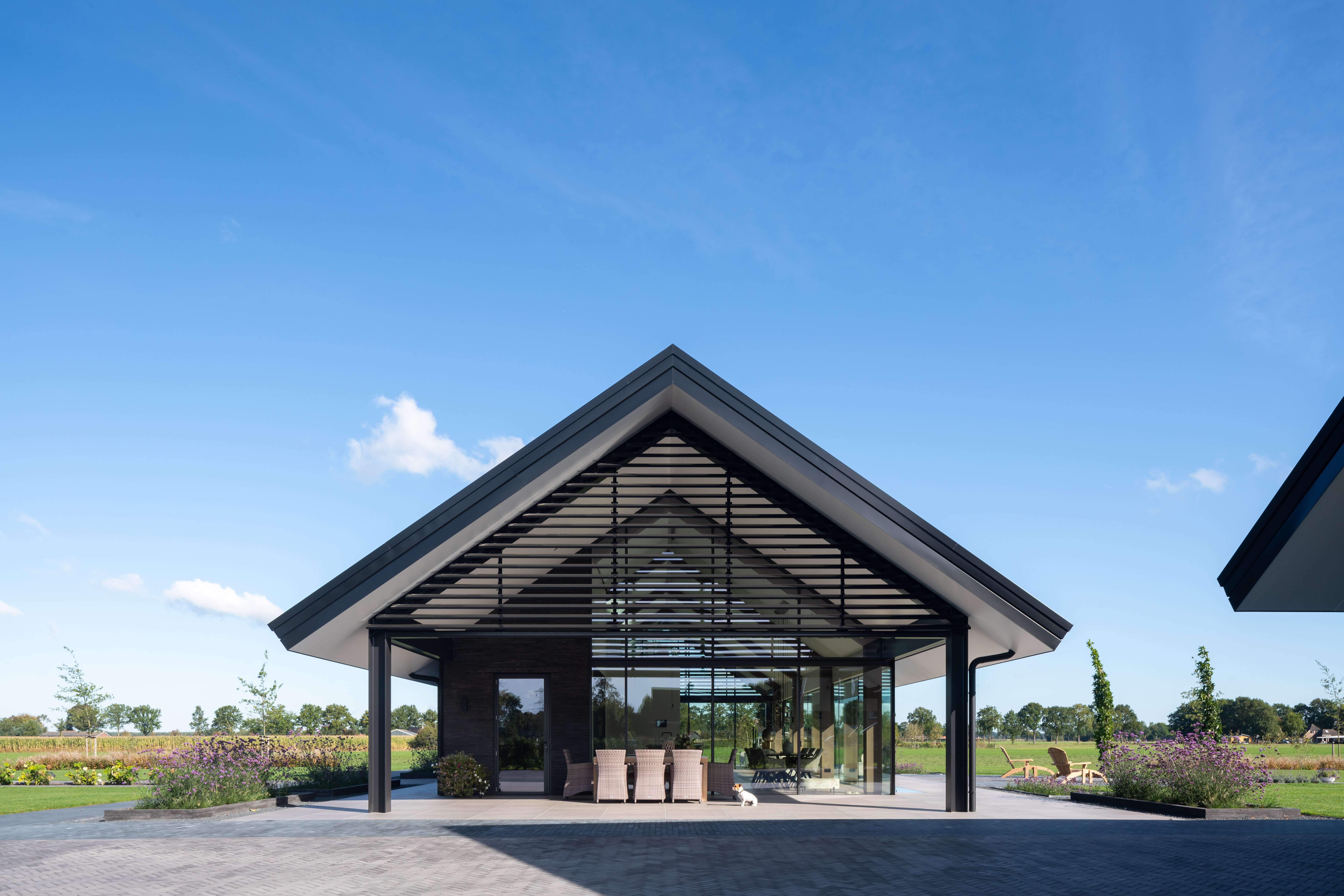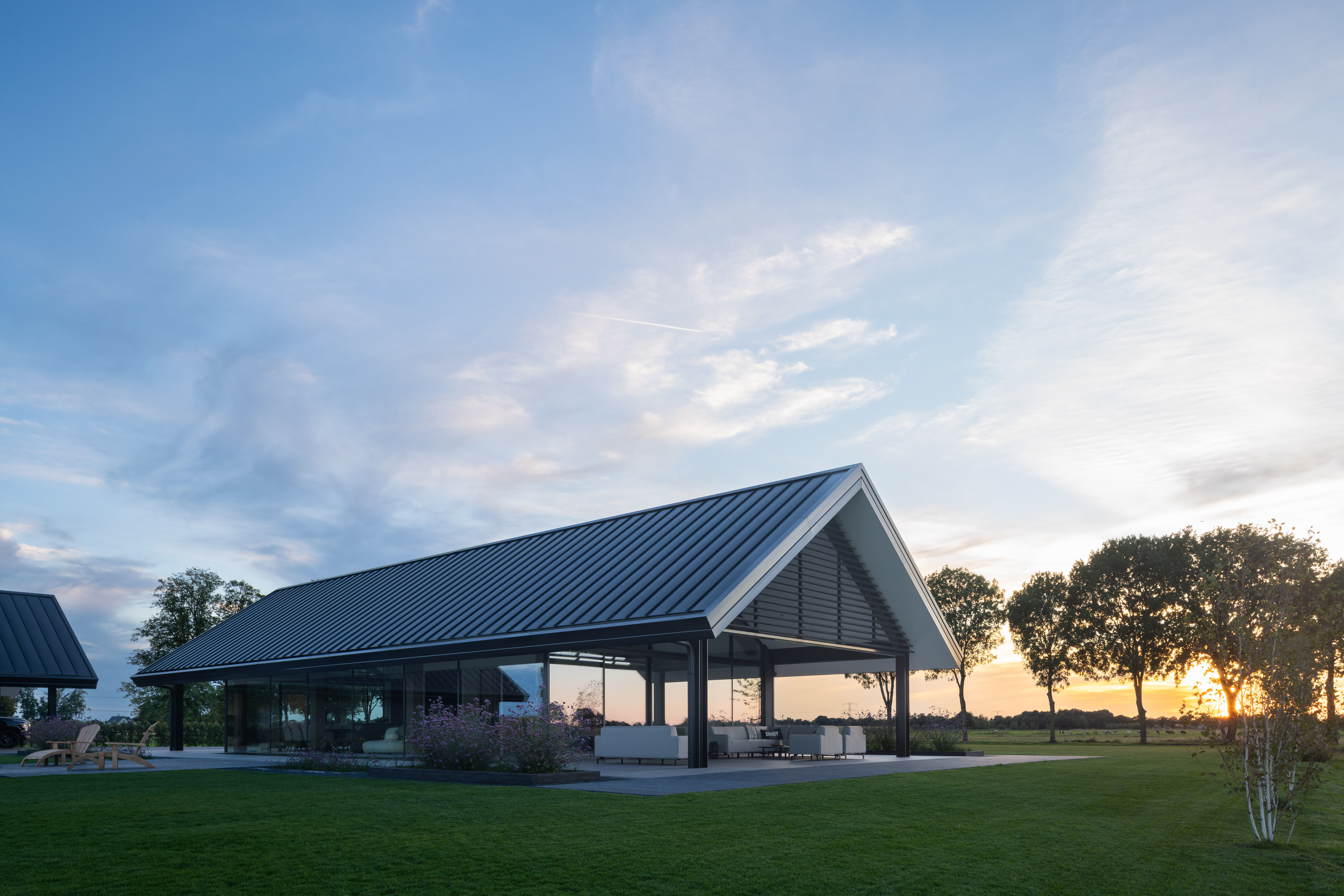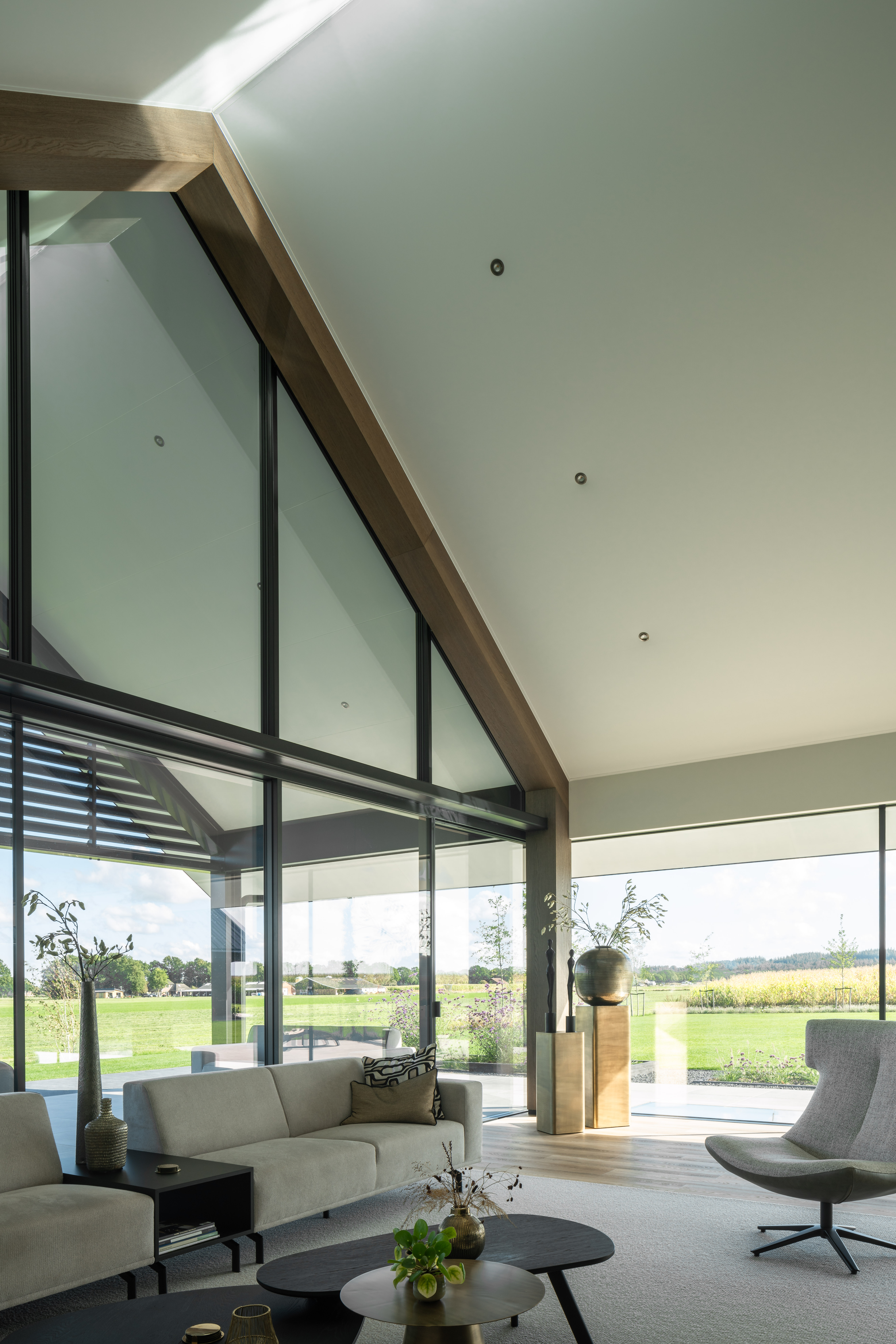 In het weidse landschap van Overijssel staat deze unieke villa die uitblinkt in rust, ruimte en transparantie. Dankzij een zorgvuldig samenspel van ultra slanke raamprofielen, volglazen deuren en horizontale schuifsystemen ontstaat een woning waarin daglicht en uitzicht centraal staan.