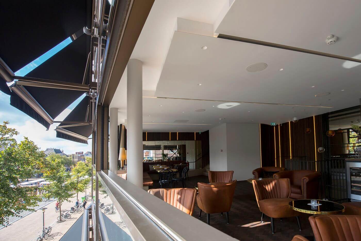 ‘Omdat dit raam dient als borstwering was aanvullende borstwering zoals bij andere verdiepingshoge raamsystemen vaak is vereist, niet nodig’, licht Jurjen van de Meer, architect en directeur/oprichter van De Zwarte Hond zijn ontwerpkeuze toe. ‘Zo creëren we maximale transparantie en besparen we ruimte.’