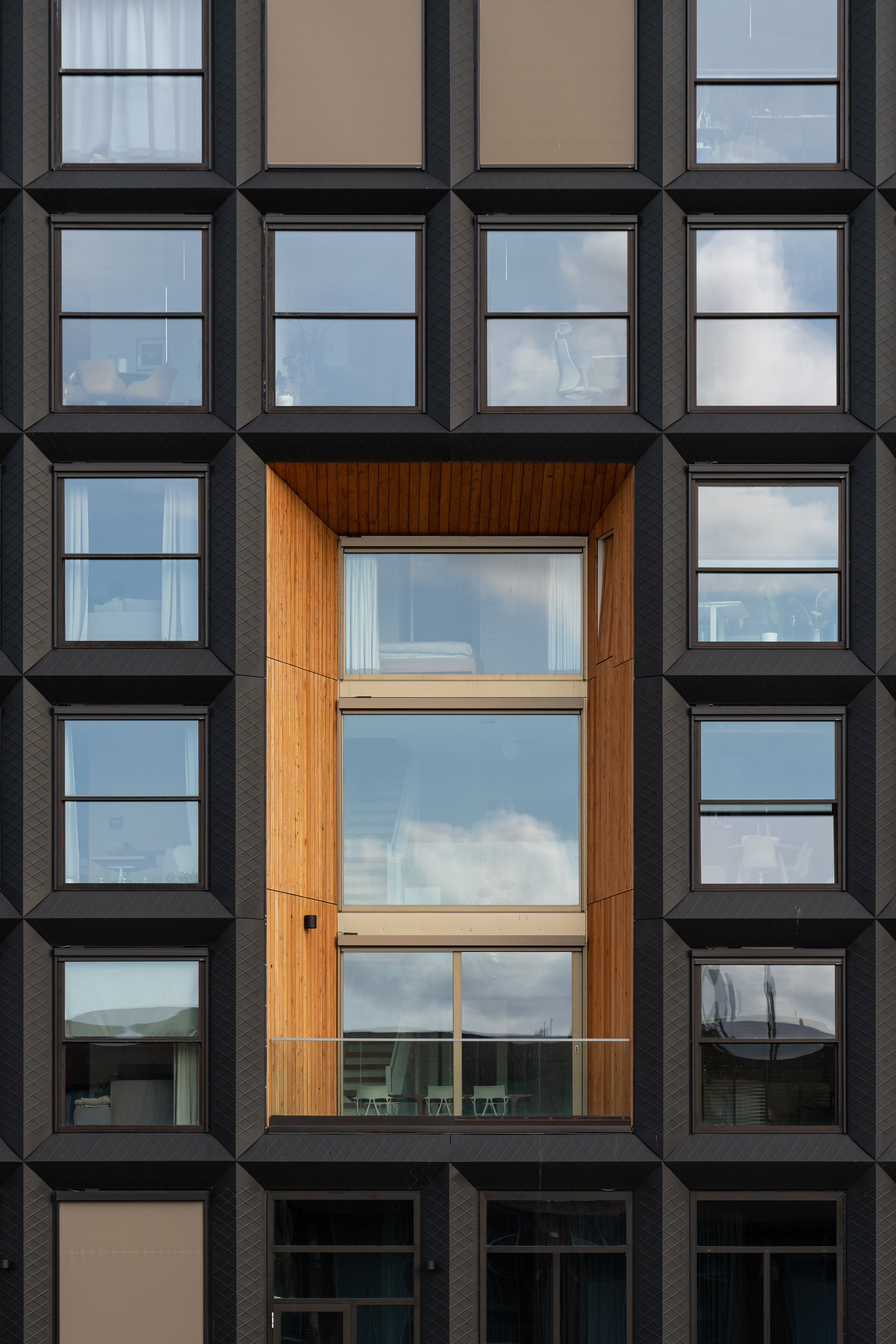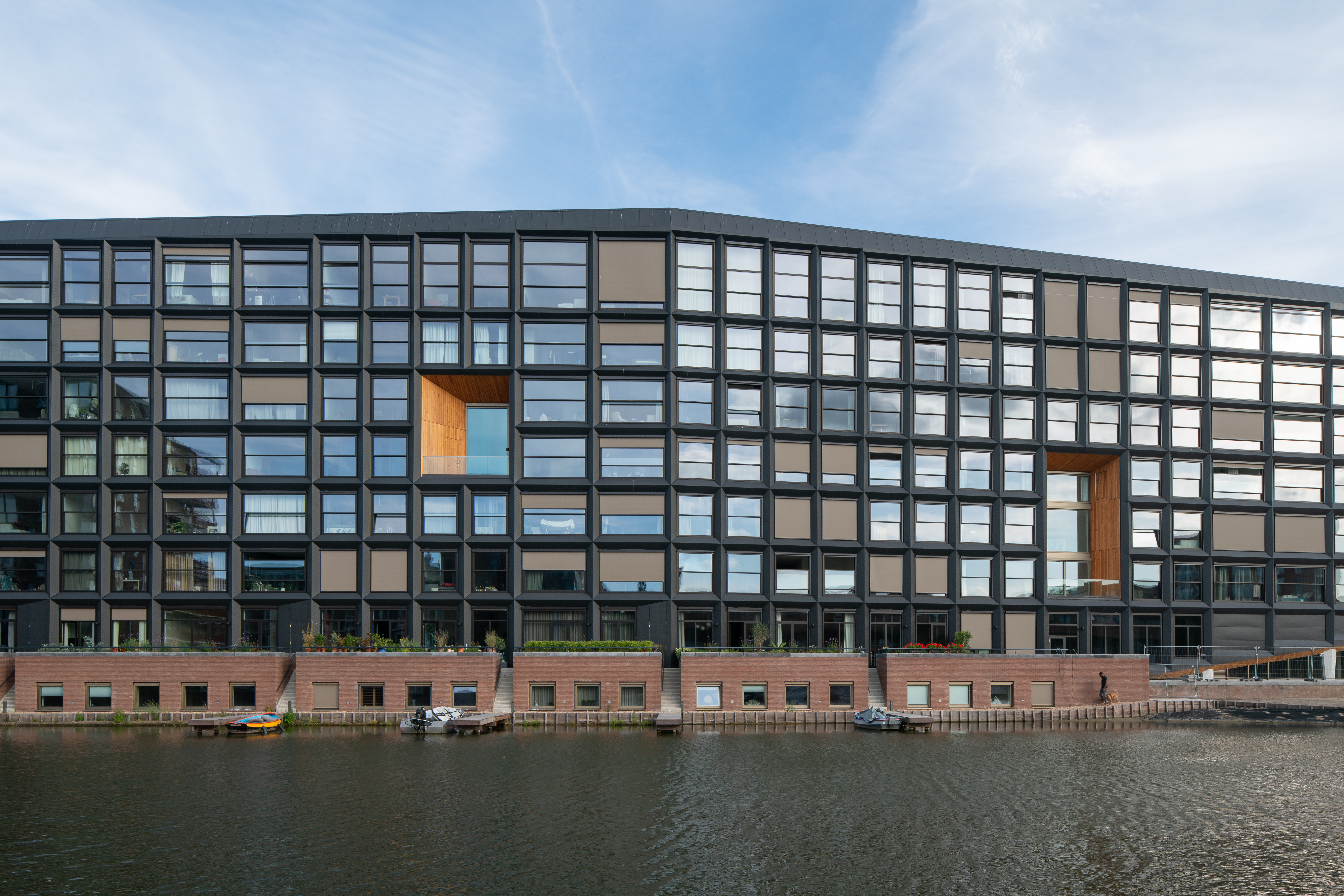 In Jonas’ spelen de MethermoXL Verticale Schuiframen een bijzondere rol. Door het toepassen van de verdiepingshoge schuiframen met minimalistisch design, zorgen voor een optimaal uitzicht op de omgeving; op de haven van IJburg en het Achterliggende IJ-meer aan de oostzijde, op het plein aan de zuidzijde en op de brede gracht en de rest van IJburg aan de westzijde. De studio’s in Jonas’ hebben geen buitenruimte, maar door de verticale schuiframen welke naar beneden schuiven wordt de bewoner in staat gesteld om op een zonnige dag zijn eigen ‘loggia’ te creëren.