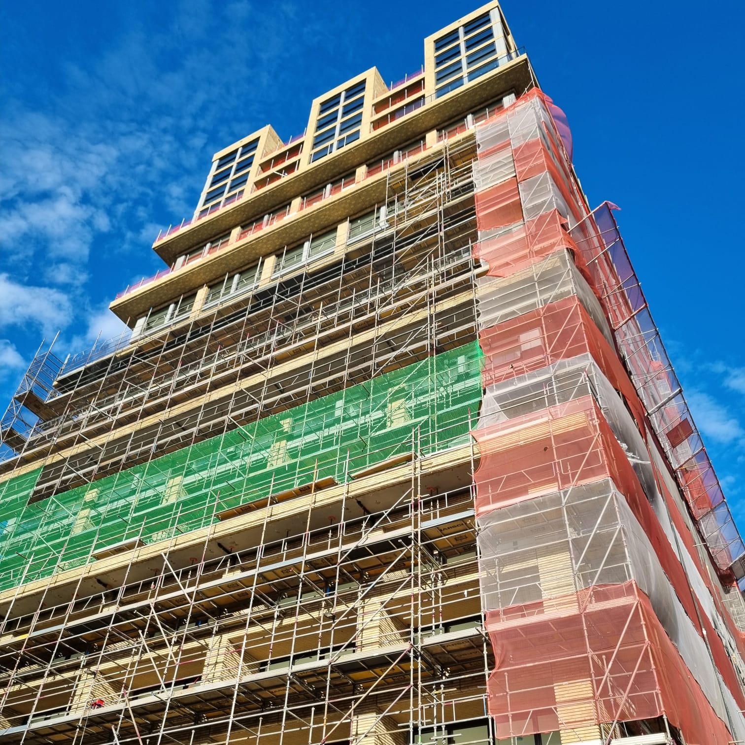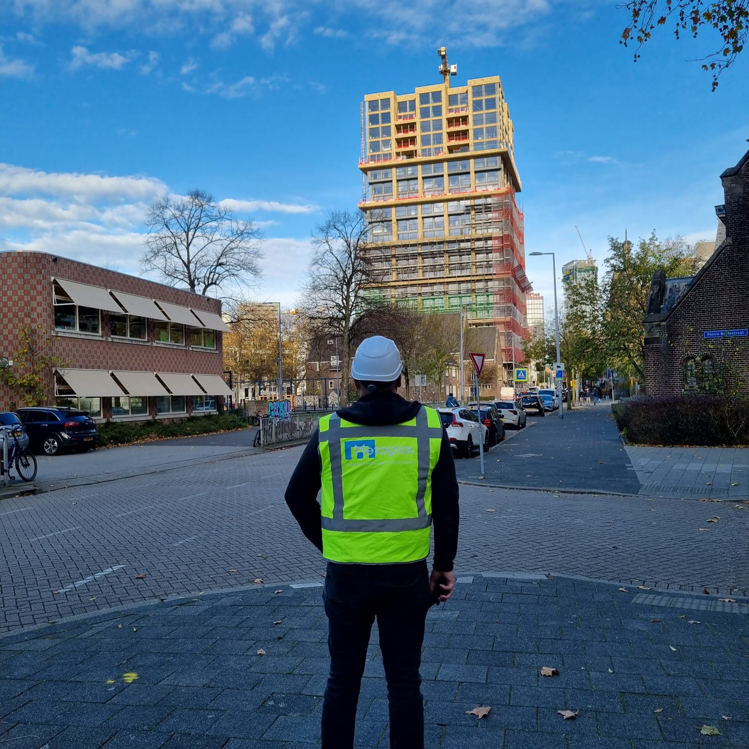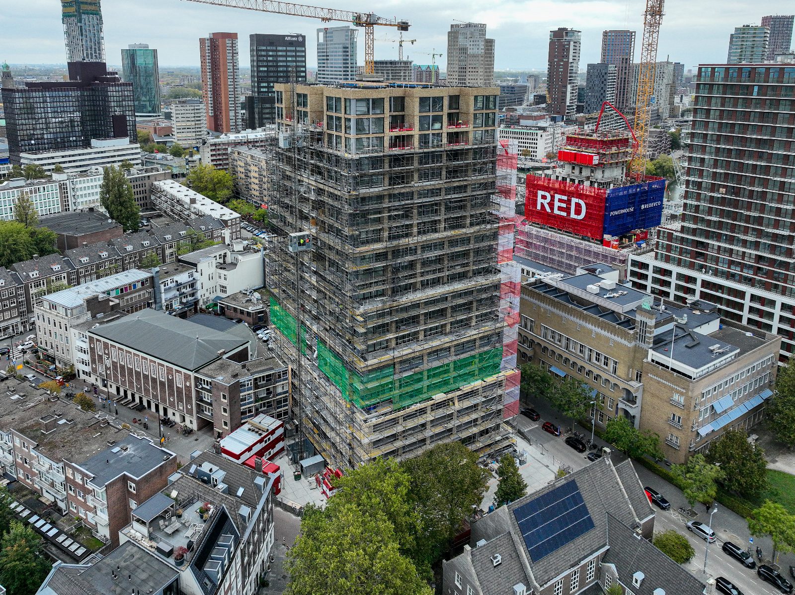 In het hart van Rotterdam verrijst De Maasbode: een nieuwe verticale woonbuurt midden in de dynamiek van de stad. Hier worden straten niet naast elkaar gelegd, maar zorgvuldig boven elkaar gestapeld. Het resultaat is een gelaagd woongebouw dat de compacte stedelijke ruimte transformeert tot een lichte, luchtige leefomgeving.