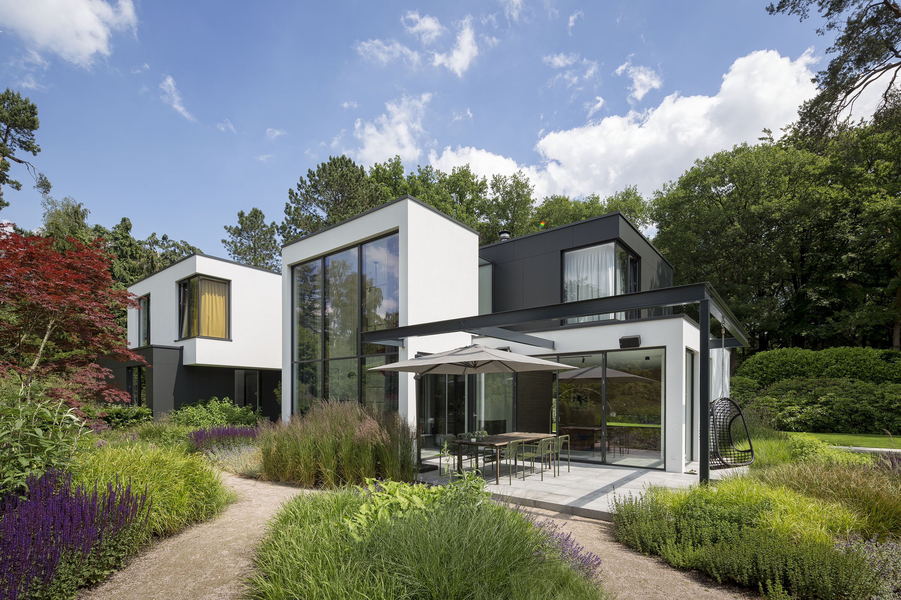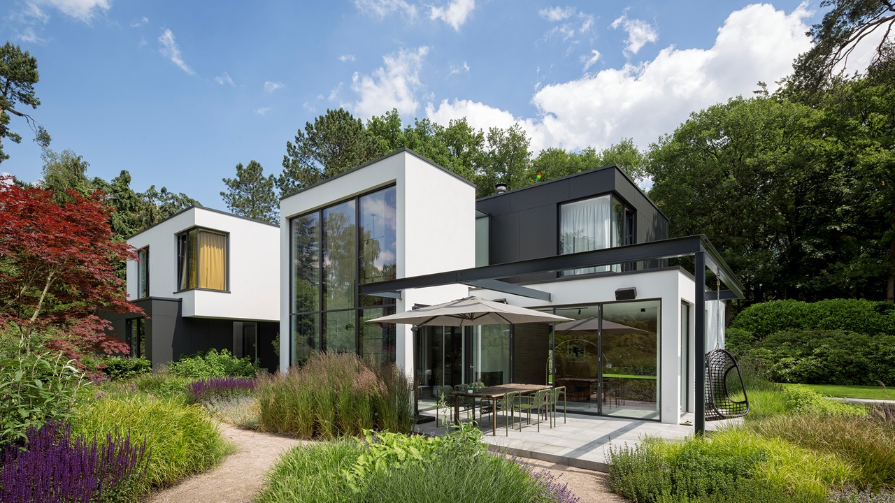 In het bosrijke Huizen is deze prachtige moderne nieuwbouwvilla gerealiseerd. Het strakke design laat zien hoe een moderne woning warm, maar tegelijkertijd ook erg ruimtelijk en open kan zijn. Doordat de villa is voorzien van onze Methermo XL producten, oogt de woning erg open van buiten, maar ook van binnen.
