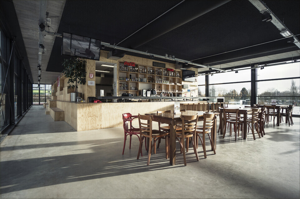 Een hele grote skybox. Zo laat het nieuwe clubhuis van AVV Zeeburgia uit Amsterdam zich nog het beste omschrijven. Het door buro SAI ontworpen onderkomen van de voetbalvereniging herbergt een kantine en inpandige tribune met glazen gevel die doorloopt naar buiten. Op 3 februari jl. is het clubhuis officieel in gebruik genomen. Na de opening door KNVB-voorzitter Michael van Praag, namen supporters voor het eerst plaats in de skybox om de openingswedstrijd tussen Zeeburgia en Klassiek Ajax gade te slaan.