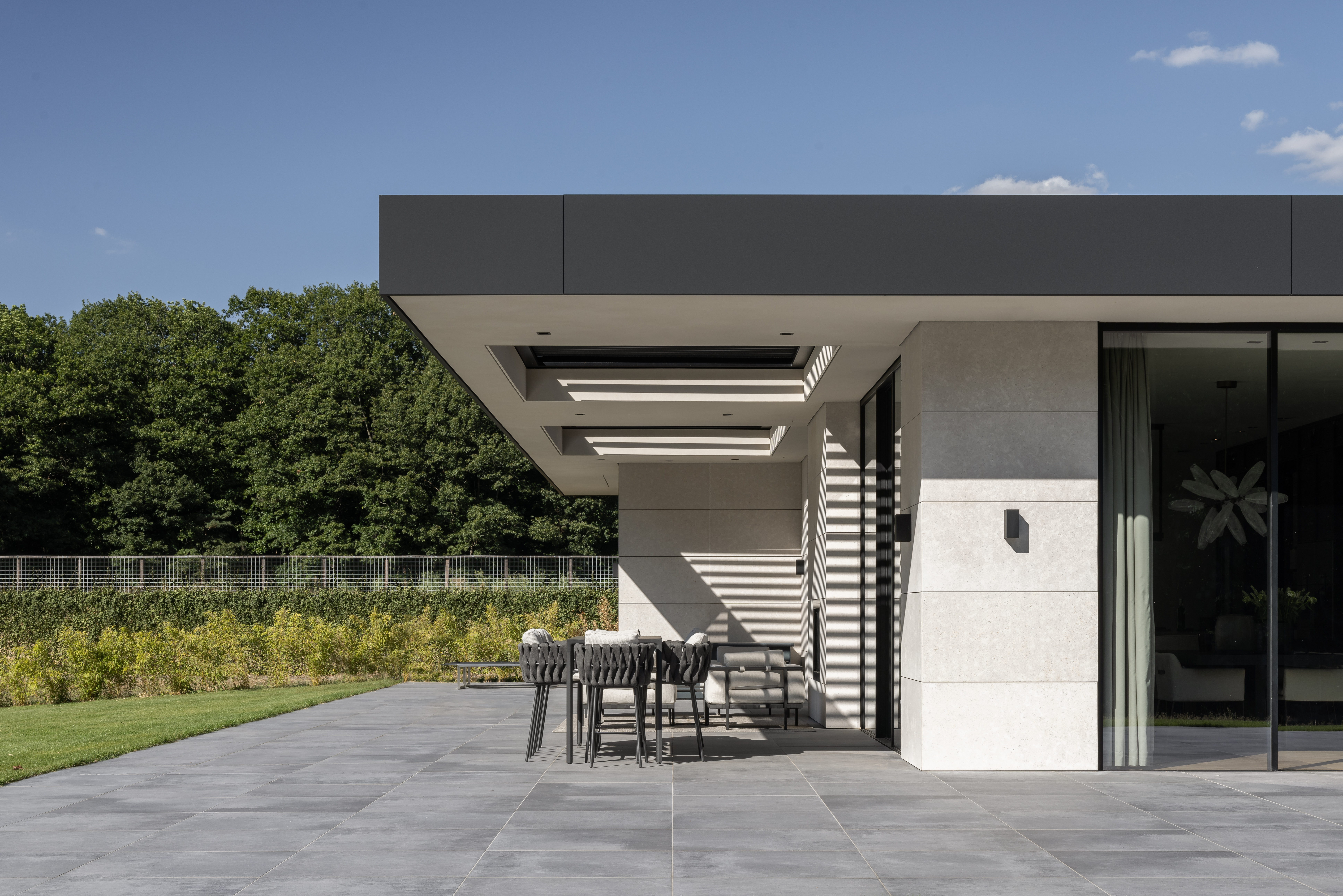 Deze prachtige villa is zo ontworpen dat de bewoners er samen oud kunnen worden. Het resultaat van het ontwerp is een gelijkvloerse villa, met strak afgewerkte buitenkant. De woning, met luxueuze uitstraling geeft ruimte en tegelijk gezelligheid.