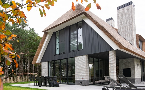Bij het ontwerp van deze luxe vakantiewoning was de ligging aan de bosrand leidend in de keuze om met grote glasvlakken te werken, om de natuurbeleving maximaal naar binnen te halen en tegelijk het zicht op de omgeving te garanderen. Met een zorgvuldige materiaalkeuze van een zachte zandkleurige gevelsteen, houten gevelvlakken en ultraslanke MethermoXL kozijnen van Metaglas past de woning perfect in zijn natuurlijke omgeving. Het ontwerp is landelijk, maar tegelijk ook karakteristiek en voorziet de woning van veel leefruimte, een fraaie lichtinval en een fantastisch uitzicht. De kozijnen van Metaglas dragen op deze manier bij aan het verhogen van het wooncomfort.