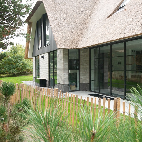 Het gebruik van roedeverdelingen in het glas versterkt het landelijke karakter van de woning, terwijl tegelijk gebruik gemaakt wordt van veel glas. De openheid en transparantie die hiermee ontstaat versterkt het overige materiaalgebruik in de woning. De MethermoXL producten dragen bij aan een koele klimaatbeleving in de zomer en zorgen voor optimale lichtinval in de winter.
