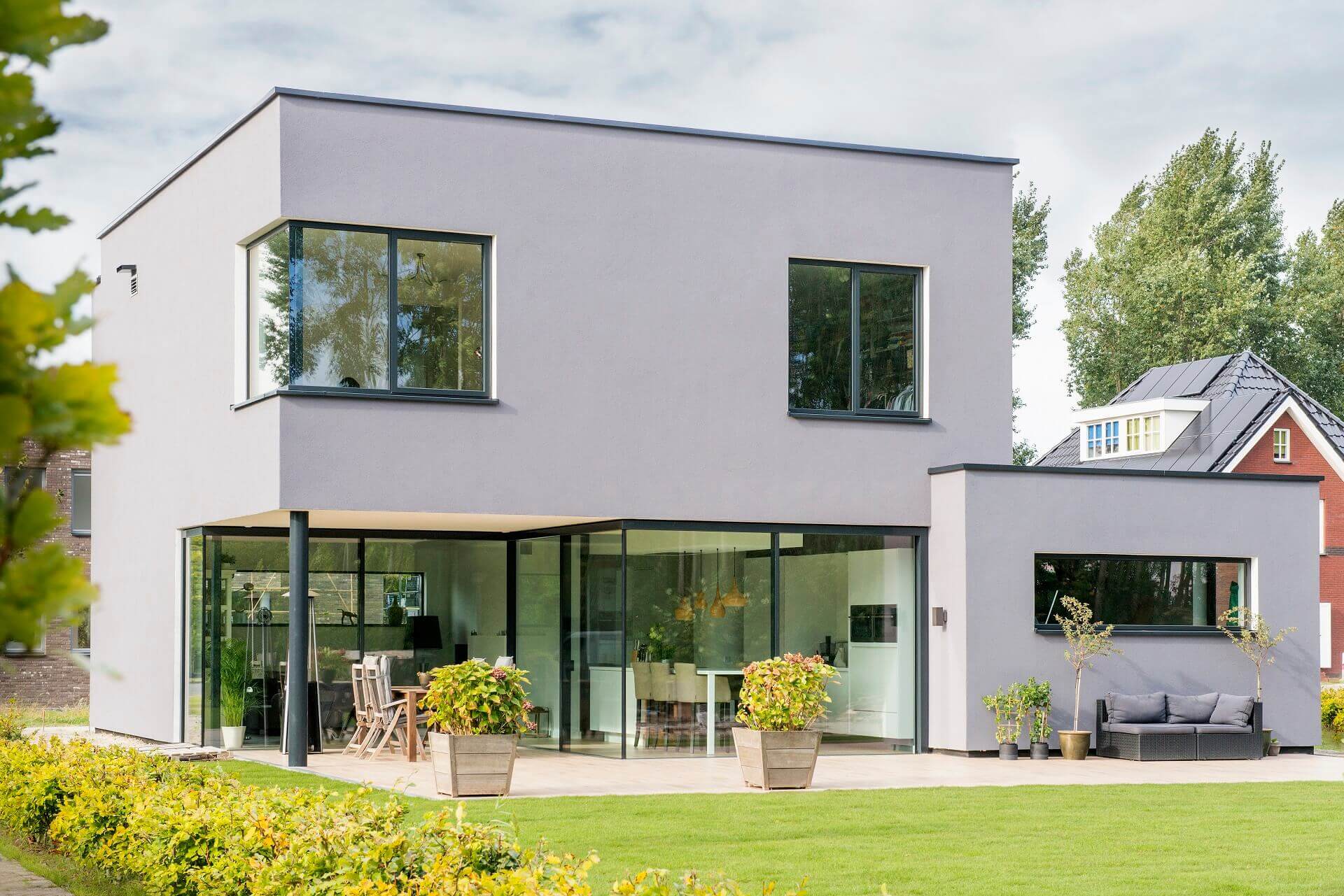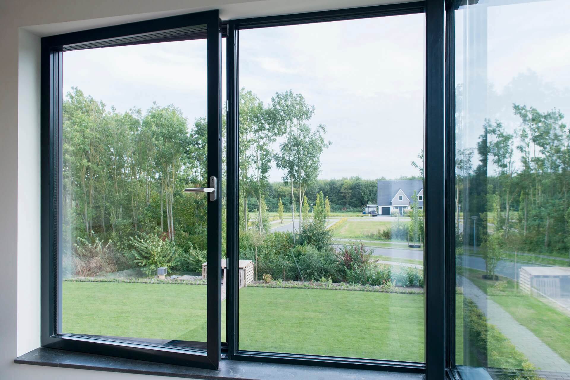 profilering van deze producten zie je voornamelijk glas’, licht Nobbenhuis de keuze toe. ‘Van buiten bekeken vallen de profielen door hun antracietgrijze kleur soms helemaal weg, in de schaduw van de negge of tegen de donkerte in de woning.’