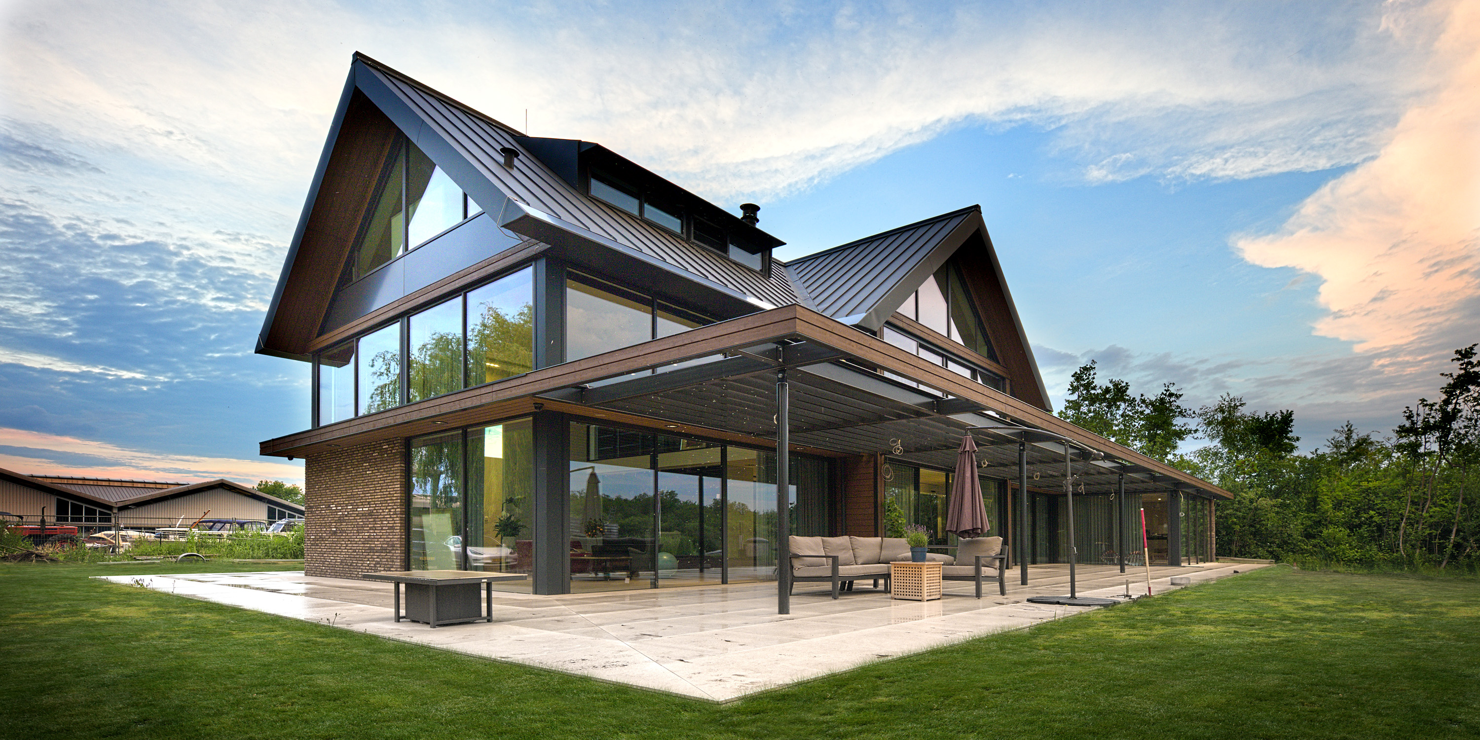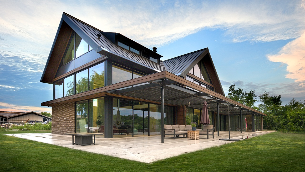 Omringd met water staat in Loosdrecht deze moderne villa met transparante en heldere zichtlijnen. Het gebruik van grote glaspartijen zorgt er voor dat iedere hoek van de woning een prachtig uitzicht heeft over de Loosdrechtse Plassen. Doordat de vloer van de woning vloeiend overloopt in het terras, zijn buiten en binnen een echt geheel. dit zorgt voor de ultieme binnen-buitenbeleving. De villa is voorzien van onze MethermoXL producten en daardoor lijkt de woning niet alleen erg open van buiten, maar ook van binnen.