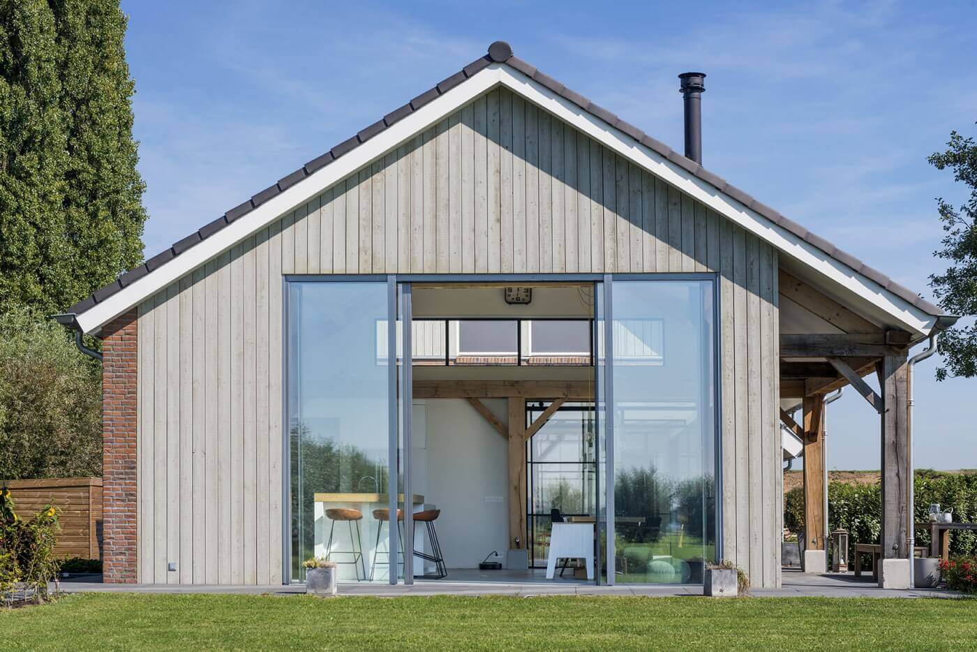 In Culemborg, achter de dijk die de Goilberdingerwaard scheidt van het achterland, ligt de nieuwe woonboerderij van Janet en Joris. De VAB-regeling stond hen toe de oude opstallen te slopen en hun droomhuis te realiseren. Met een paar restricties. De inhoud van de nieuwbouw mocht niet groter zijn dan 600 kubieke meter en door de ruime afstand tot de dijk moest de woning de uitstraling van een boerenschuur krijgen.