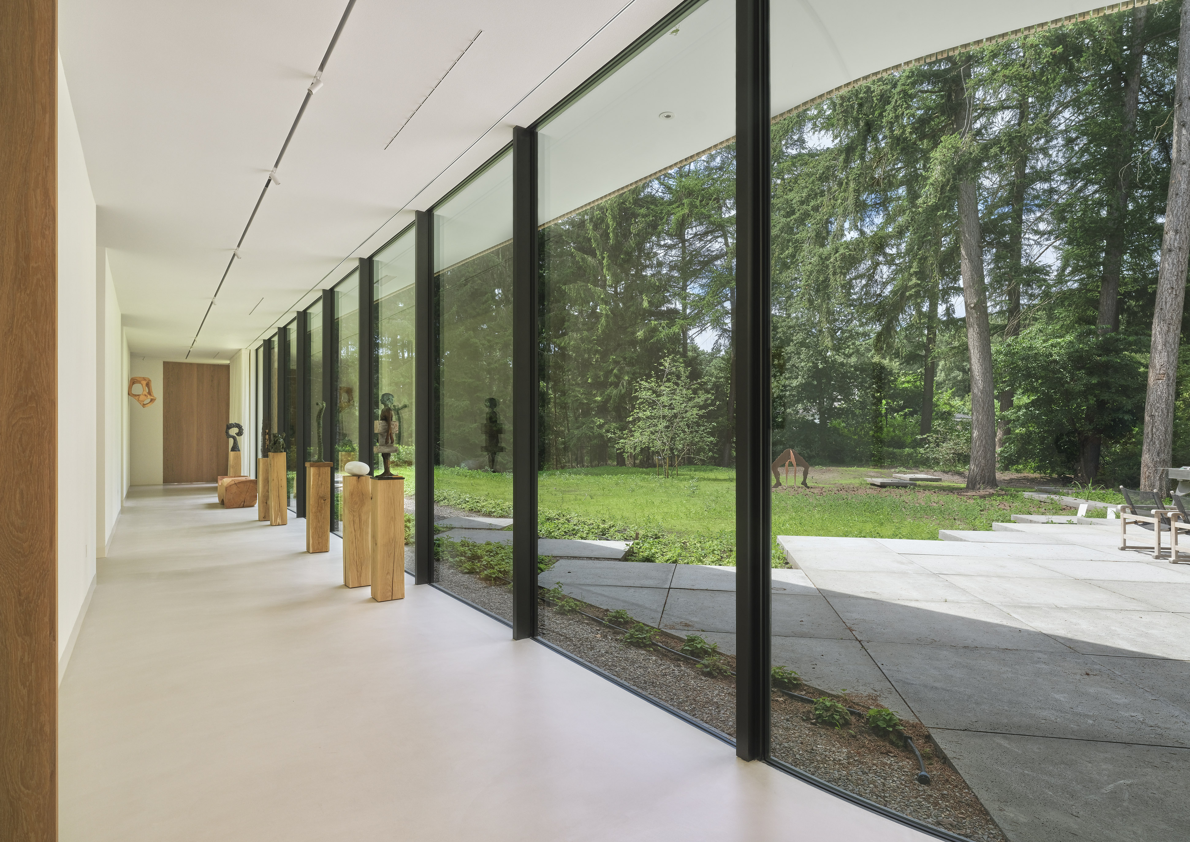 De onlangs opgeleverde villa bevindt zich op een open plek in het bos op de Holterberg. Naast het behoudt van bomen was een van de wensen het streven naar maximale verbinding tussen de bewoning en de natuur. Het ontwerp van binnenuit is als een wandeling door het landschap met telkens wisselende uitzichten.