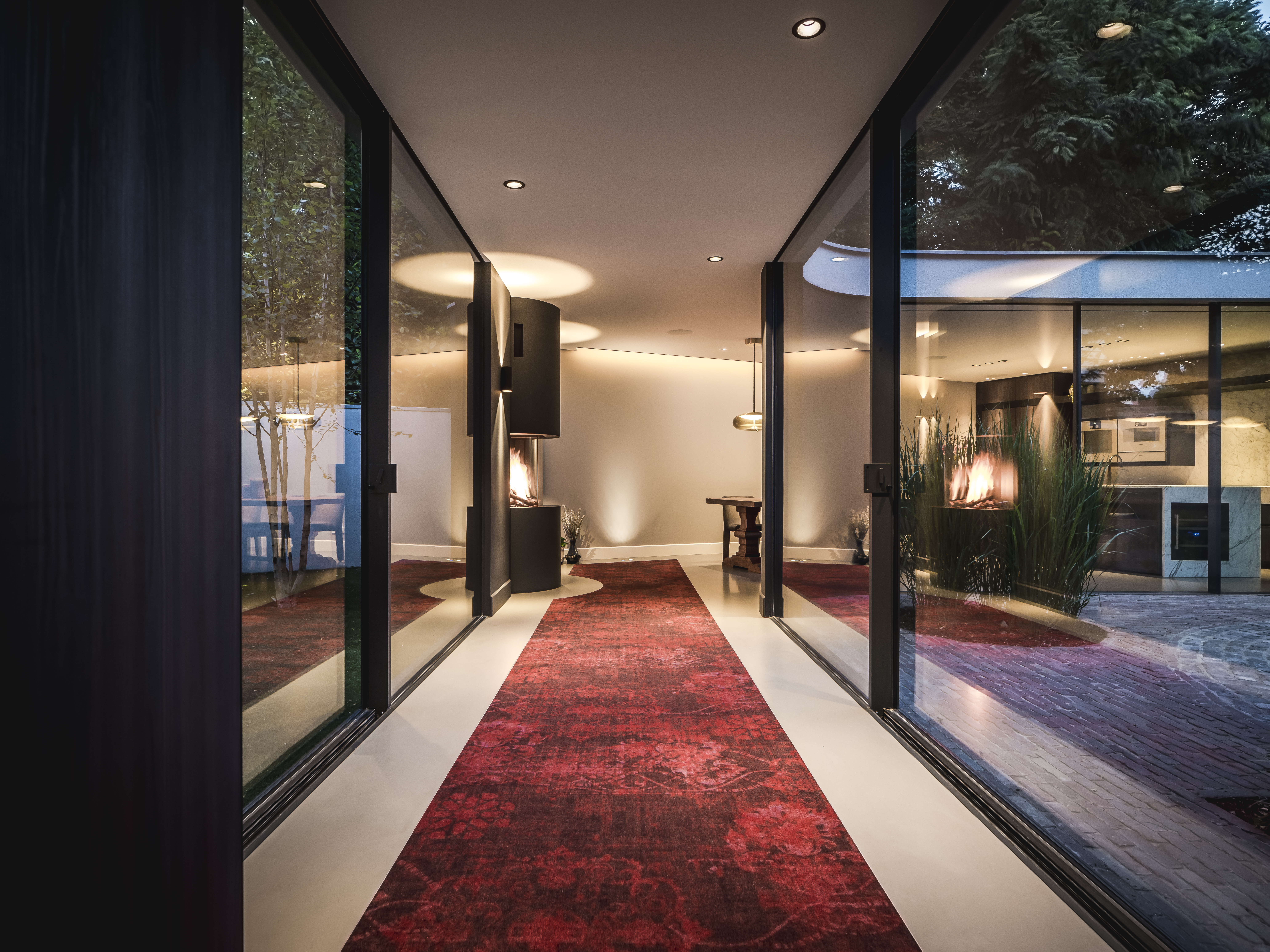 In dit project zijn meerdere MethermoXL producten, waaronder schuifpuien toegepast. Metaglas haar producten zorgen voor een subtiele en open overgang tussen de binnen- en buitenomgeving, met maximale daglichttoetreding. Door de toepassing van grote glasoppervlakten wordt maximale transparantie en uniek zicht gerealiseerd. De kozijnen van de puien zijn ingebouwd in de vloer, muren en het plafond, waardoor een naadloze verbinding ontstaat, dit effect wordt versterkt bij het openen van de puien.