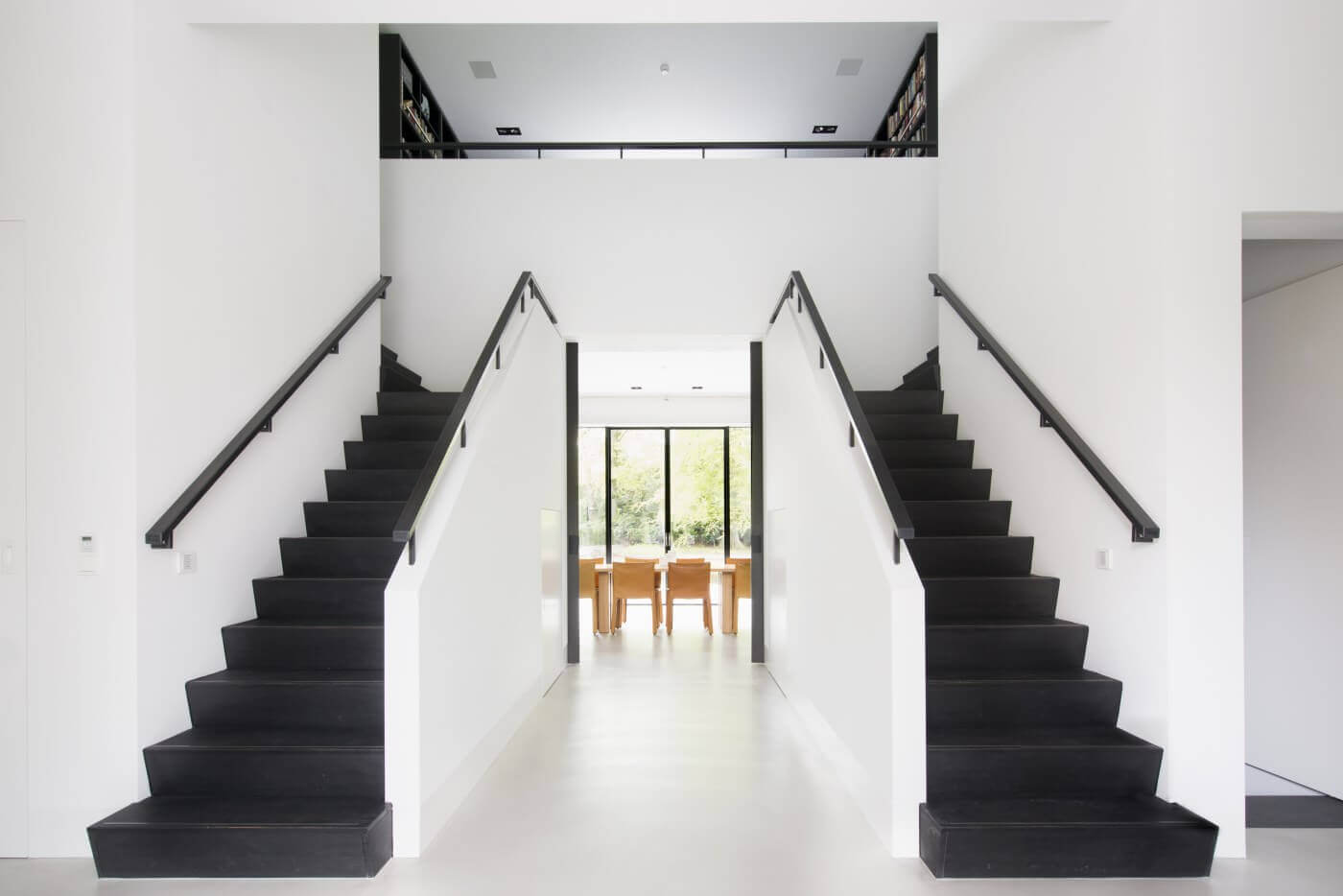Poort vertelt dat er drie assen door de gehele woning lopen, die voor zorgen een open plattegrond. Via hoge taatsdeuren kunnen de ruimtes worden afgescheiden. “Eigenlijk is het een heel klassiek huis qua opzet: een centrale hal waar je binnenkomt waaraan alle ruimtes liggen. Oude huizen van pakweg honderd jaar geleden werden ook zo gebouwd. Alleen dit keer dus in een modern jasje.”