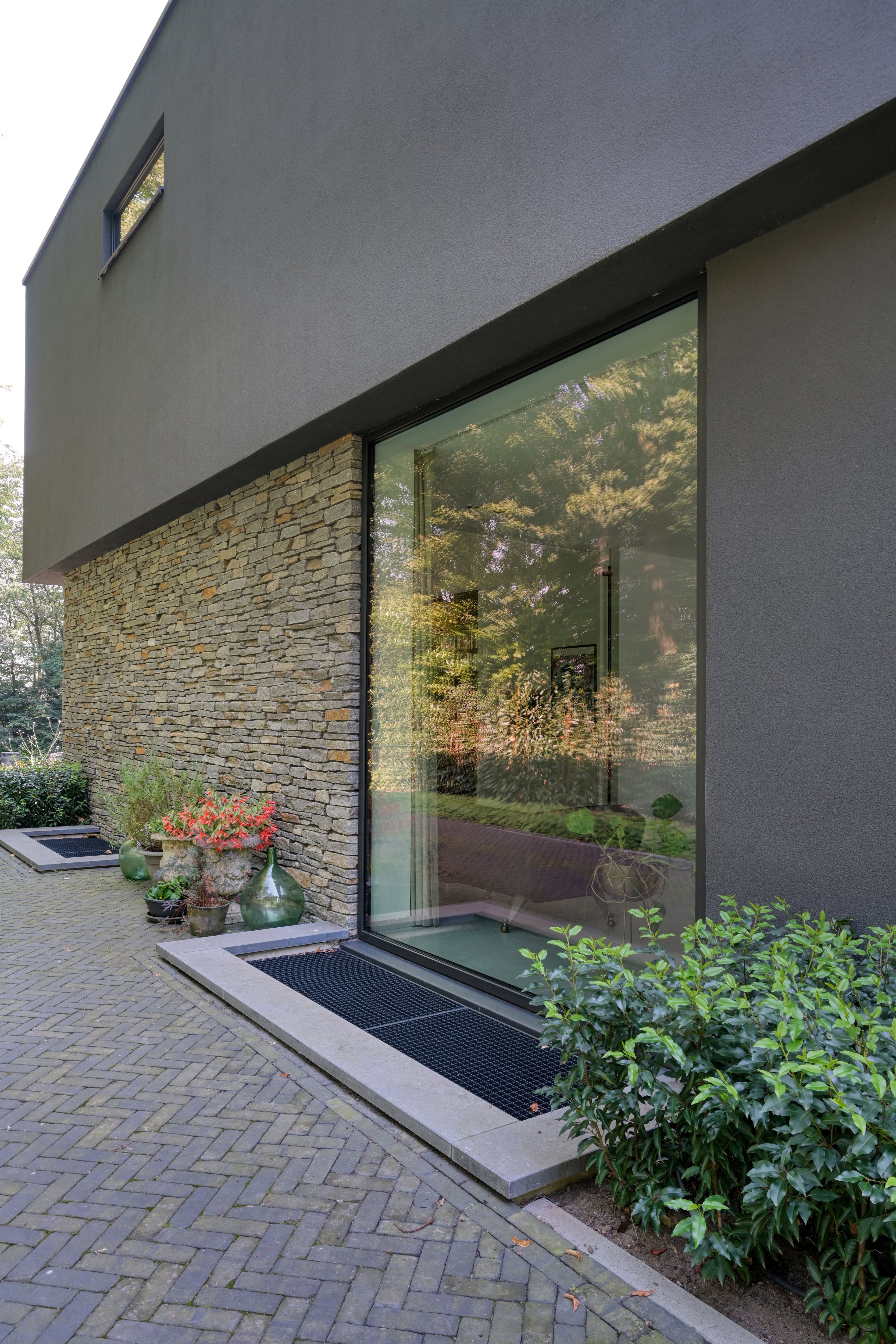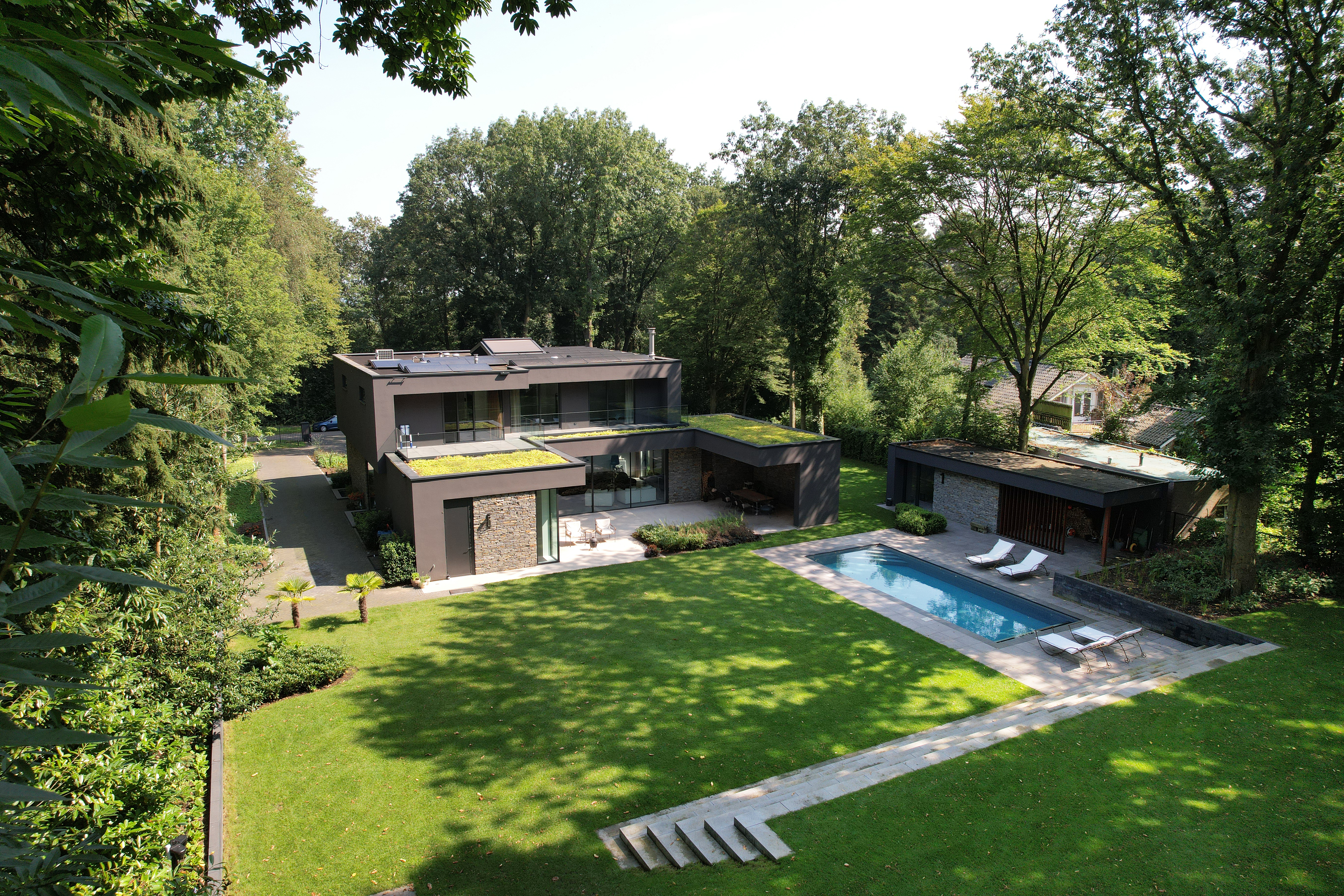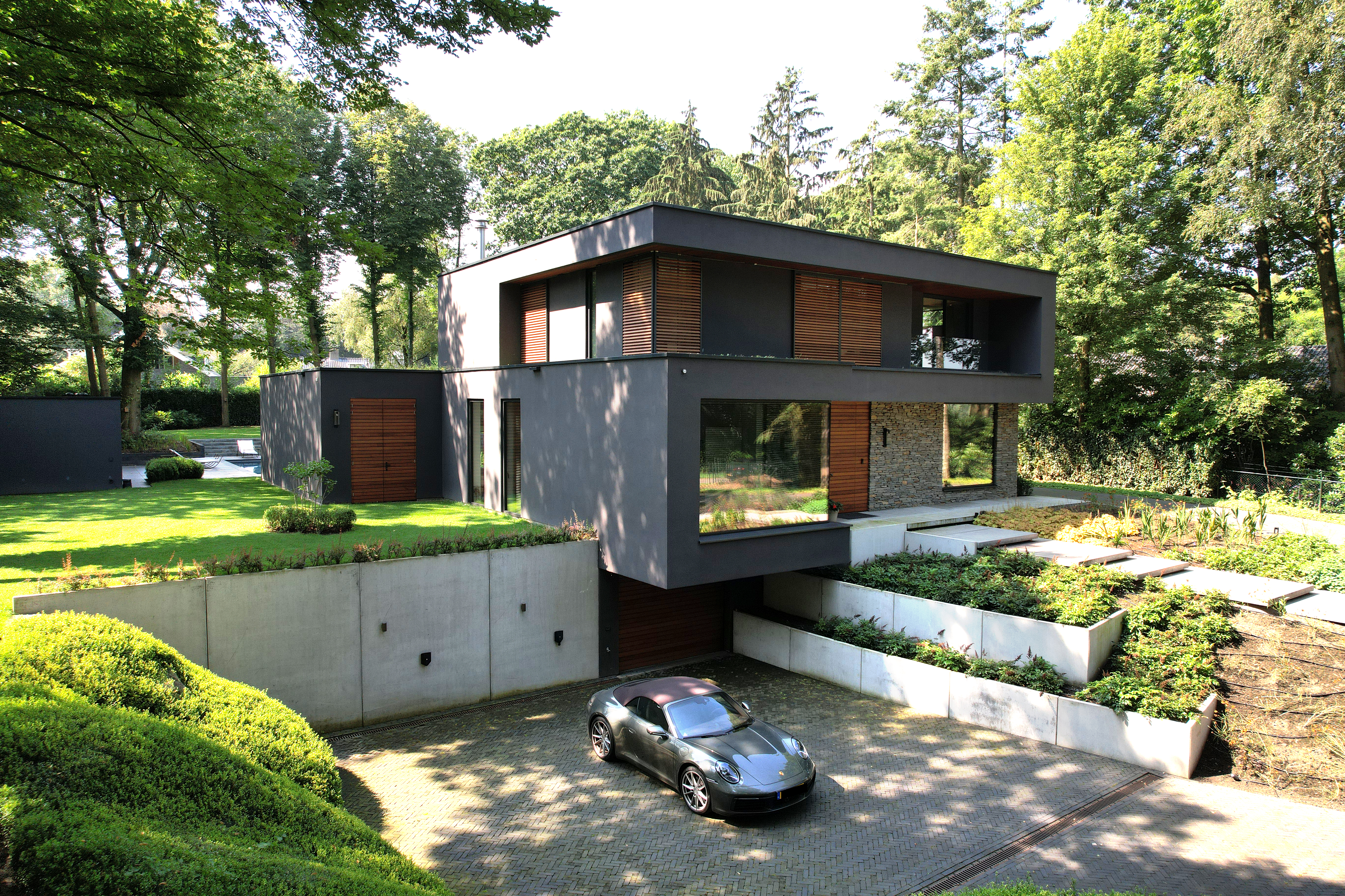 In het bosrijke Rhenen staat deze moderne villa ontworpen door Station D Architects. De strakke kubistische vormen sluiten prachtig aan bij het glooiende landschap. De woning is ruim opgezet met grote glaspartijen, een indrukwekkende entree met een drie meter hoge voordeur en een opvallend “zwevend” kantoor aan de voorzijde. Materialen als natuursteen, hout en stucwerk geven het exterieur een speels maar stijlvol karakter, een woning waar je niet op uitgekeken raakt.