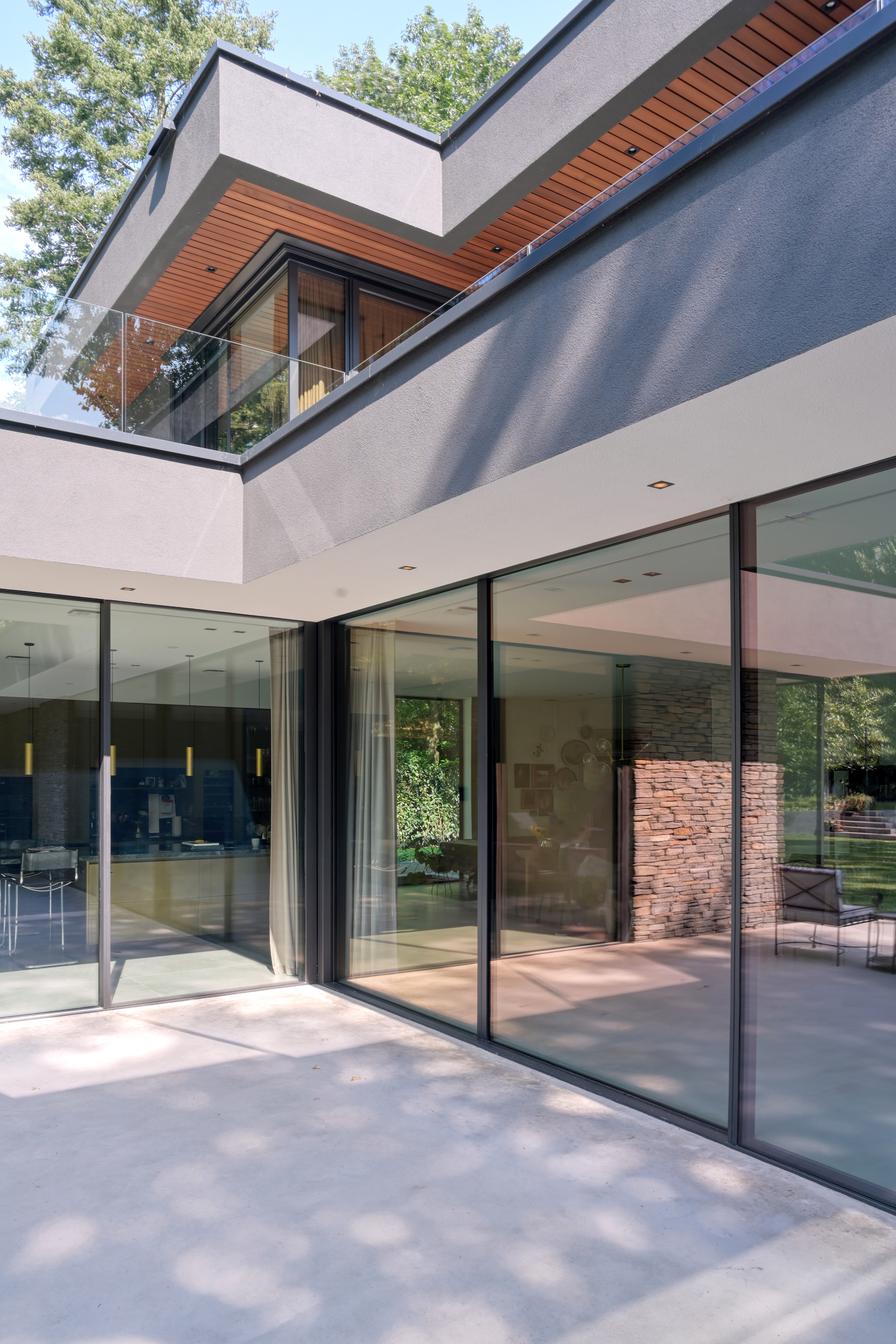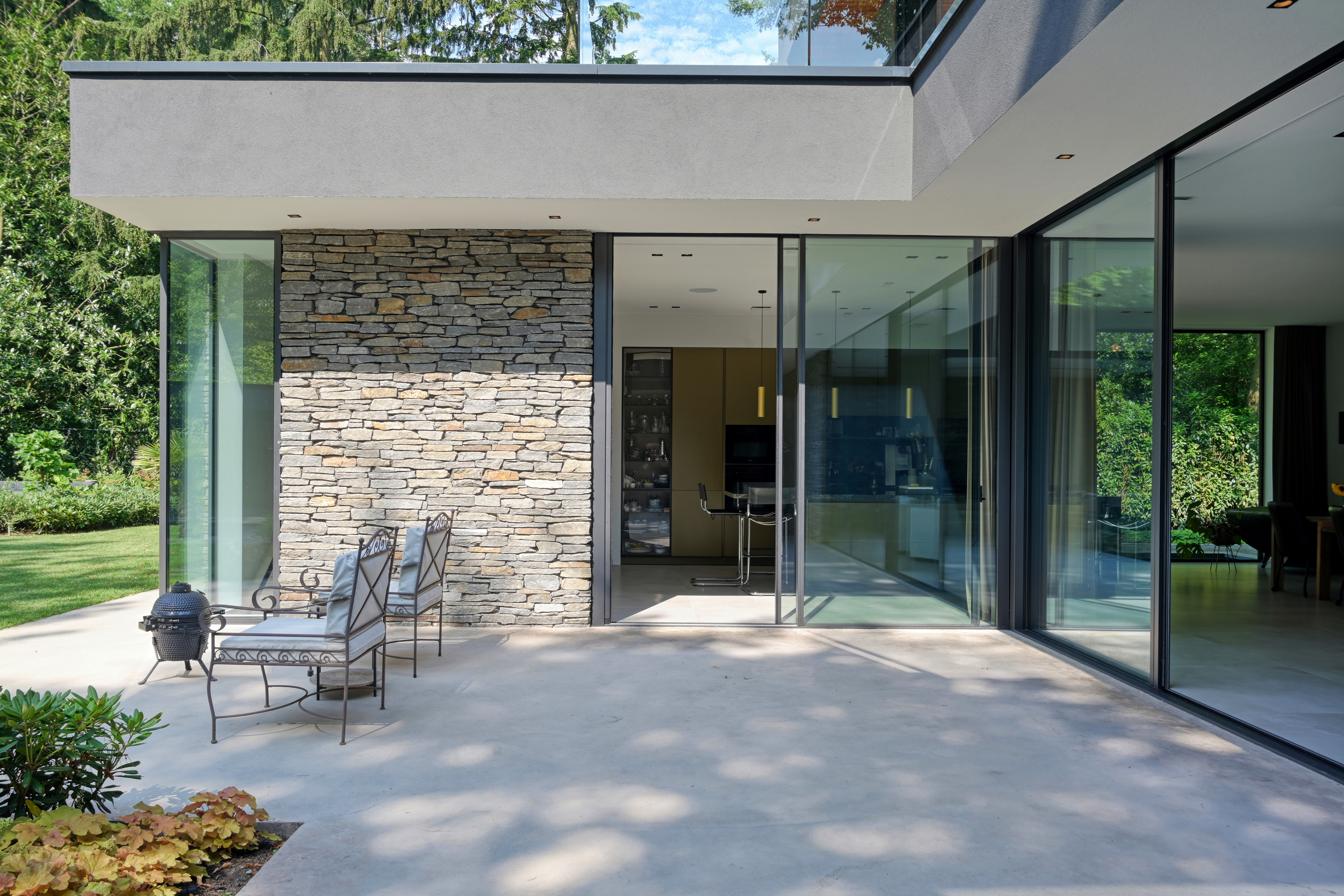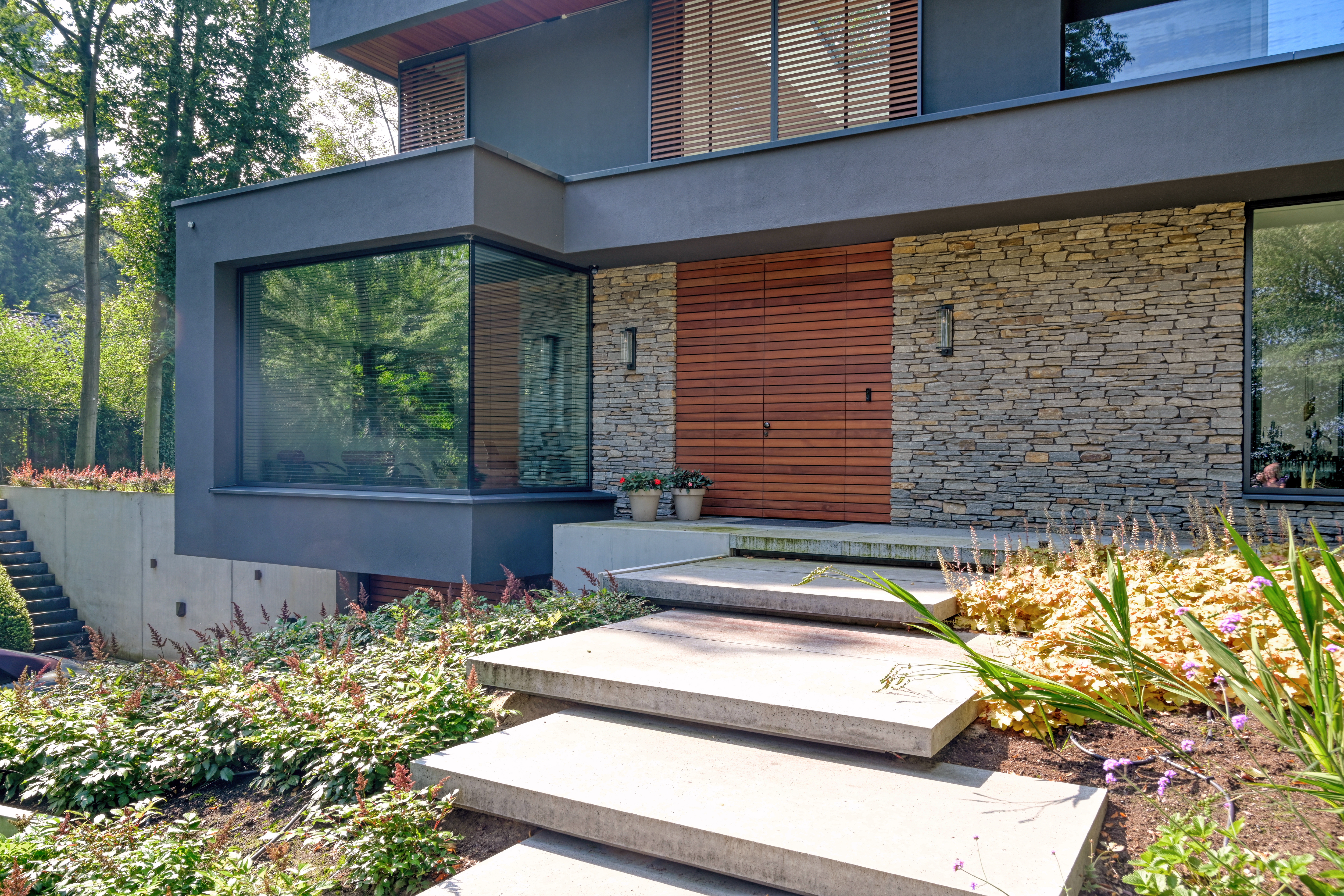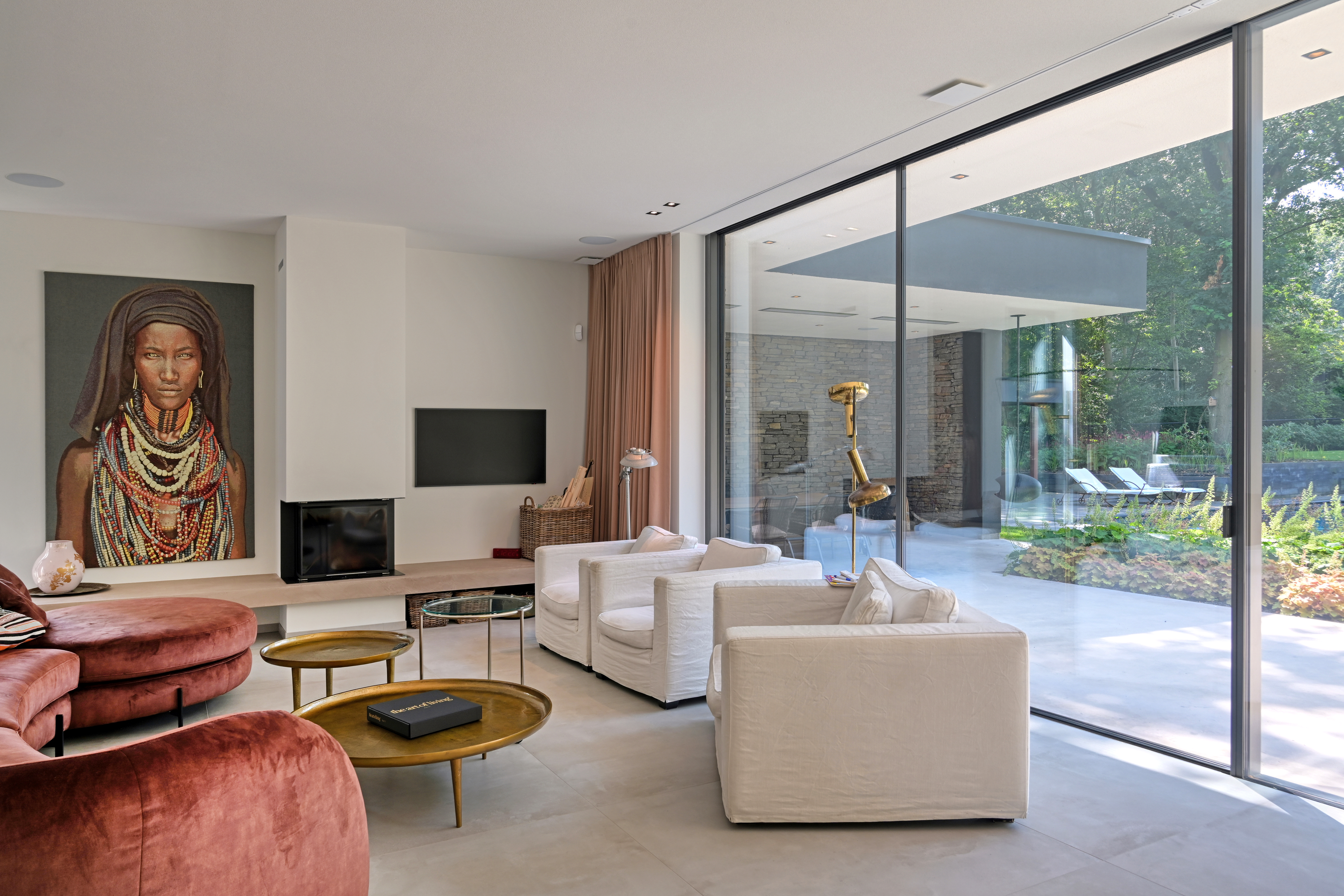In het bosrijke Rhenen staat deze moderne villa ontworpen door Station D Architects. De strakke kubistische vormen sluiten prachtig aan bij het glooiende landschap. De woning is ruim opgezet met grote glaspartijen, een indrukwekkende entree met een drie meter hoge voordeur en een opvallend “zwevend” kantoor aan de voorzijde. Materialen als natuursteen, hout en stucwerk geven het exterieur een speels maar stijlvol karakter, een woning waar je niet op uitgekeken raakt.