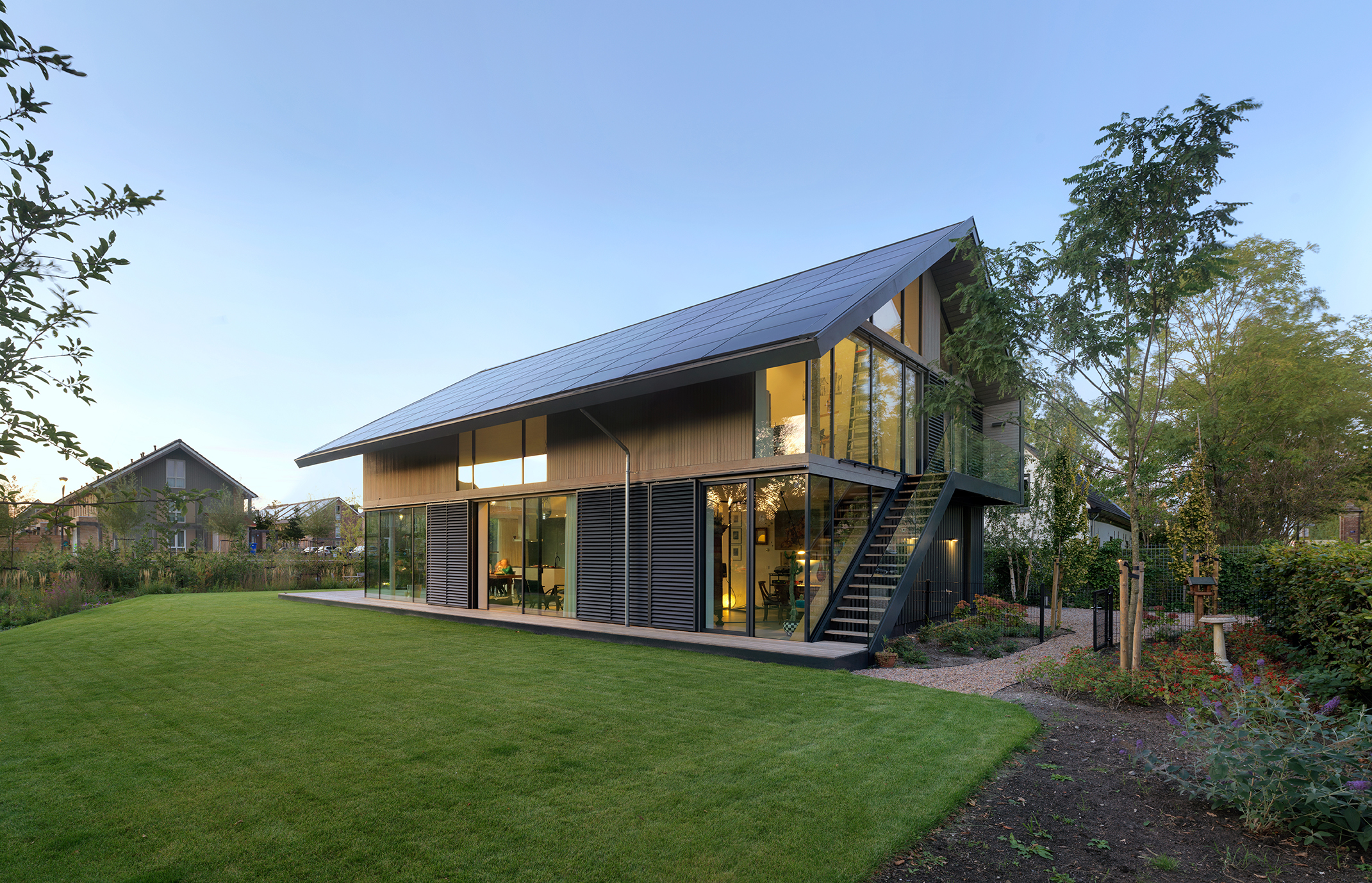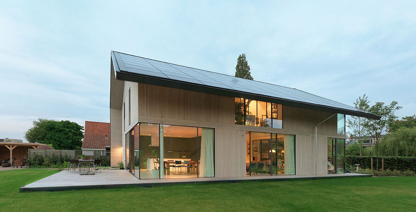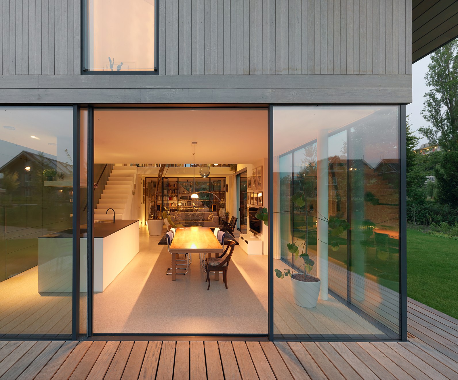 In de gevel - gekenmerkt door delicate lijnen, onverwachte openingen en robuuste elementen – herken je de poëtische visie van DP6. “Het is modern en sensitief én omsluit de bewoners”, zegt de architect daarover, “een eenvoudige vormentaal, waarin elementen vloeiend doorlopen.” Zelfs het dak met zonnepanelen en grote overstekken werd één robuust element passend in de ritmiek. Door toepassing van Methermo®XL is het mogelijk om het lijnenspel in alle ramen, deuren en puien terug te laten komen, zodat het een geheel vormt.