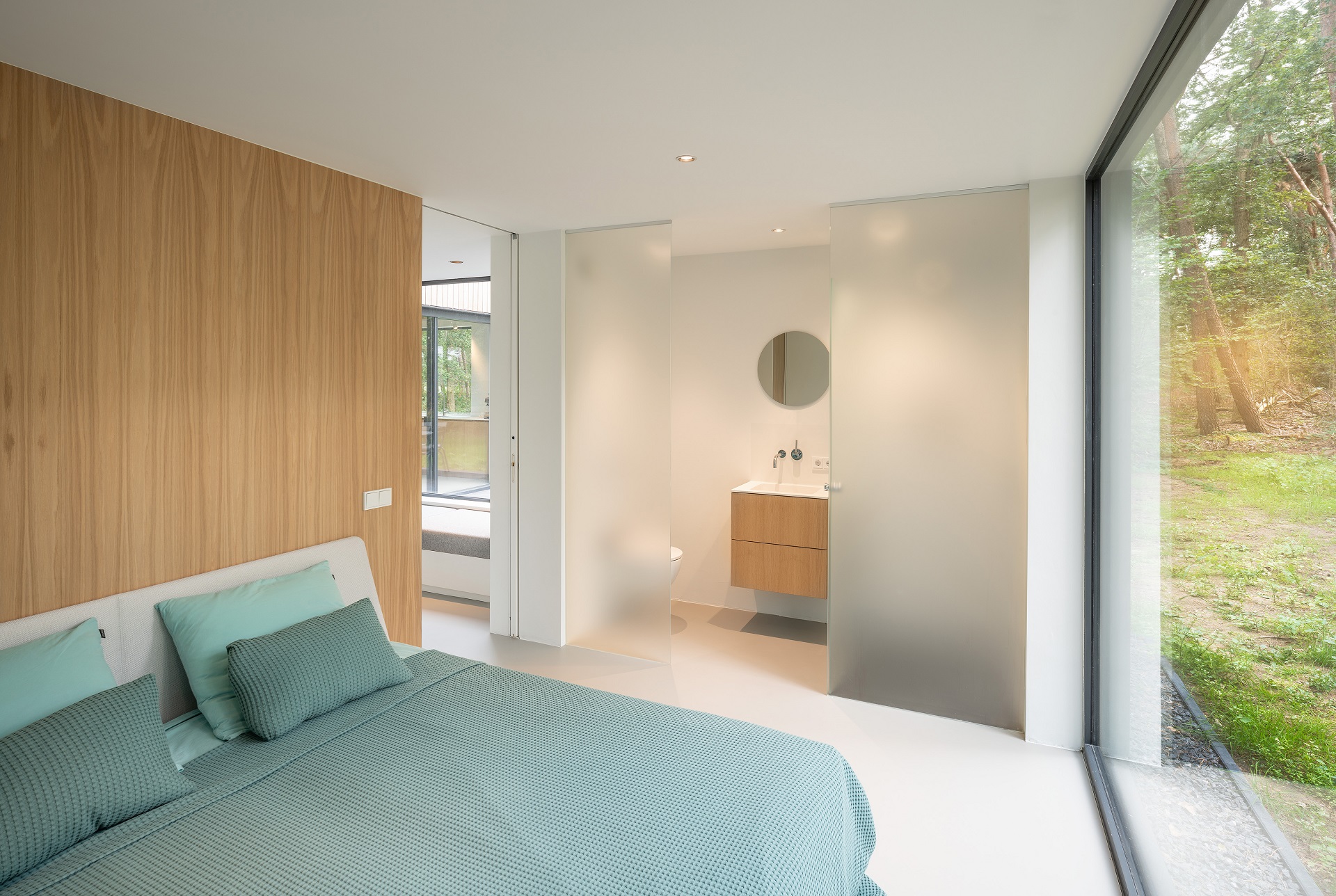 De villa heeft een karakteristieke vorm en bestaat uit drie geschakelde volumes. De gevels zijn voorzien van aluminium raamkozijnen uit de MethermoXL-lijn. Het minimale design en de grote glasoppervlakken zorgen voor een ultiem contact met de bosrijke omgeving en brengt maximaal daglicht in de binnenruimtes.