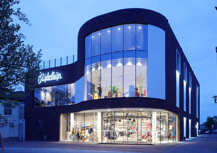 De oude winkel van Blijdesteijn was een twintig jaar oude doos waarin vrijwel geen daglicht binnenkwam en alles versleten was. Afgelopen februari opende het nieuwe modehuis met ruim 3500 vierkante meter kleding en schoenen. De winkel is licht en overzichtelijk en beslaat de begane grond en de eerste verdieping. De tweede verdieping van het pand huisvest kantoren en opslag. De glazen gevel en de vloeiende lijnen in ex- en interieur zijn zonder twijfel een nieuwe blikvanger in het stadscentrum van Tiel.