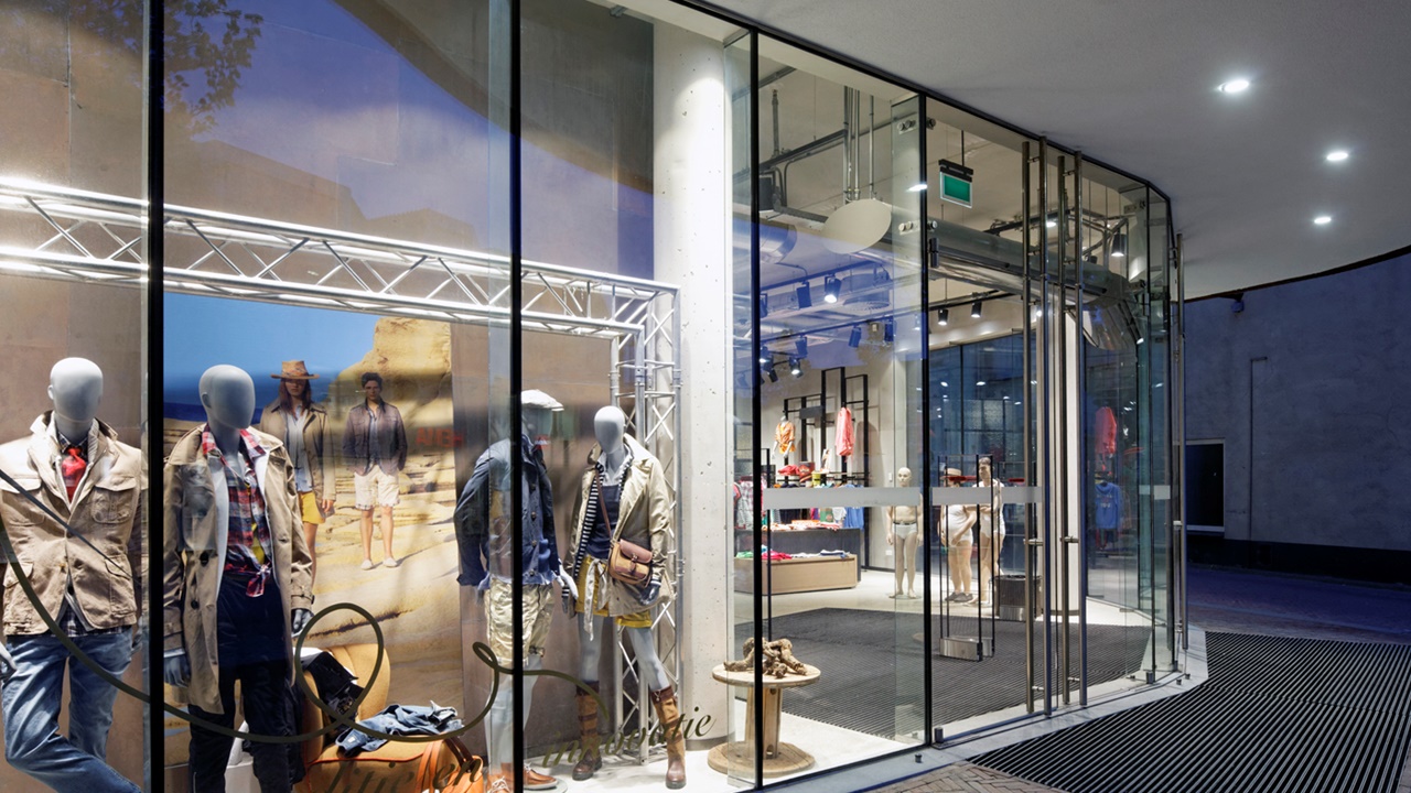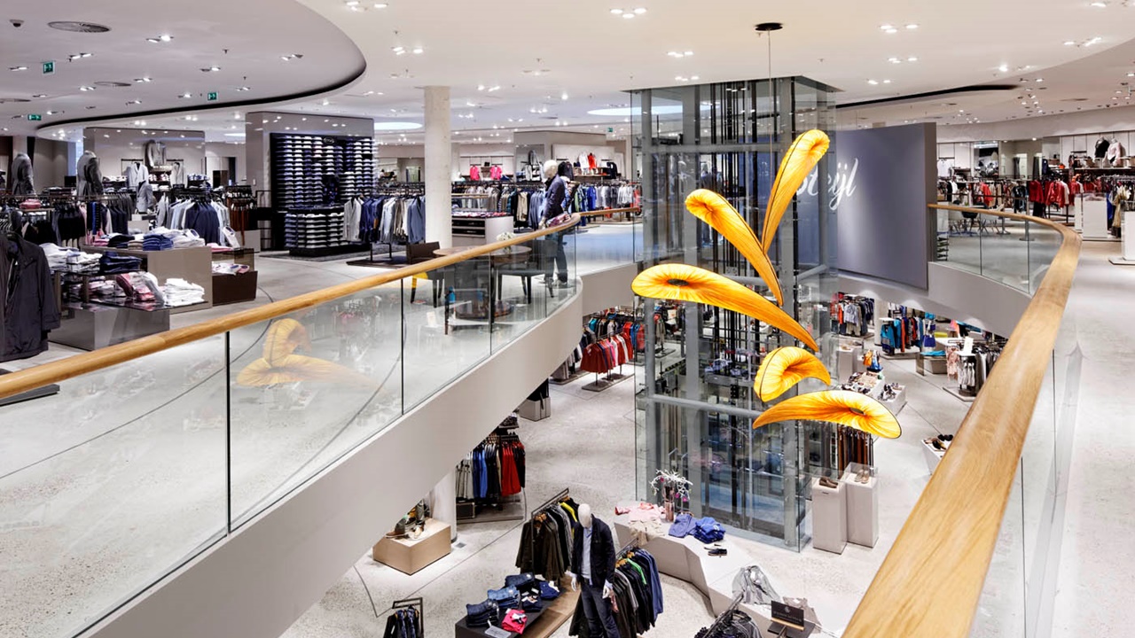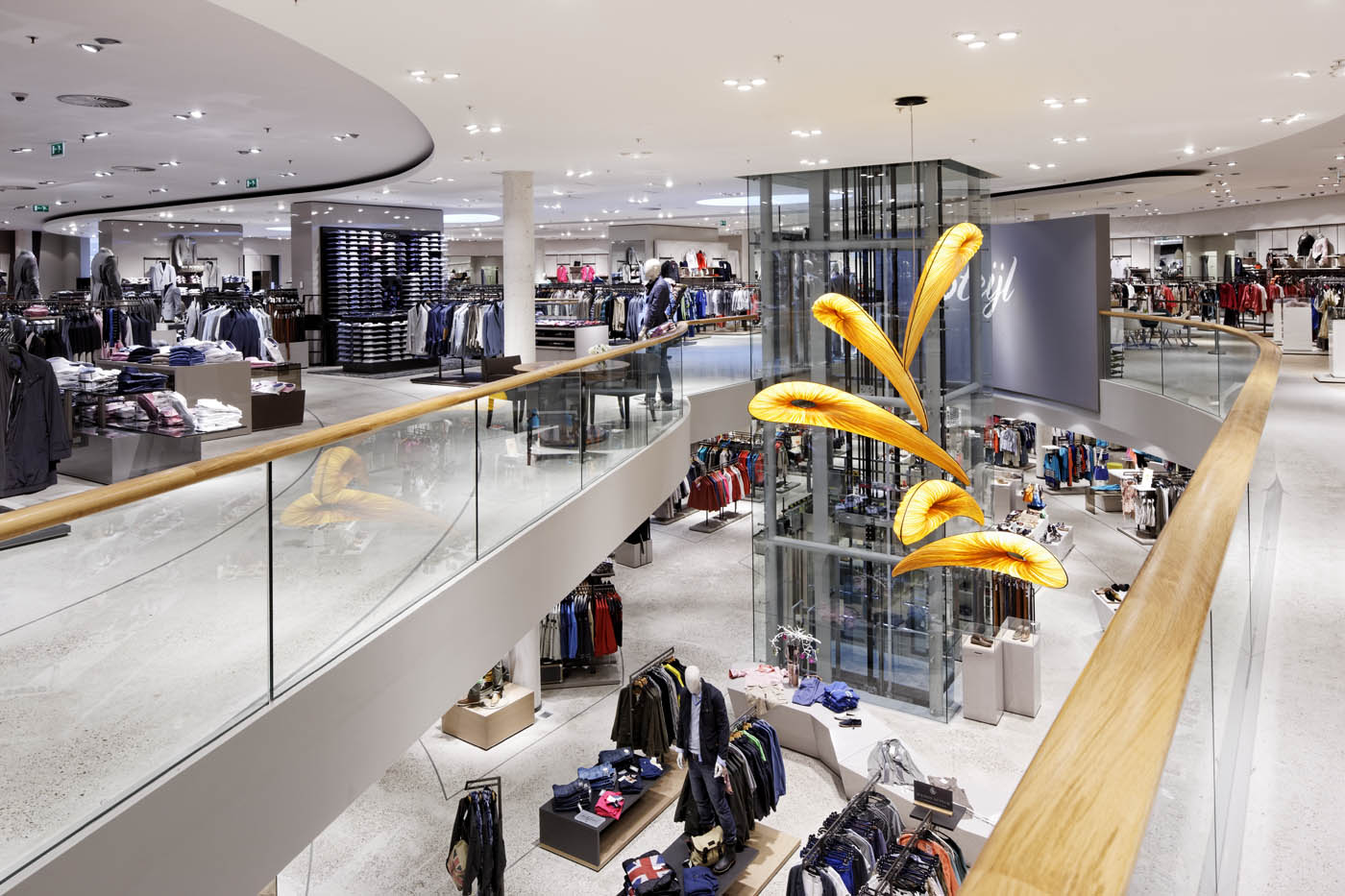 De rondingen van het exterieur zijn geïntroduceerd als verlengstuk van de nabijgelegen Waal; ze zijn prachtig doorgevoerd in het interieur. Eenheid in architectonische stijl stonden voor familie Van Blijdesteijn bovenaan. Wat de bezoeker buiten ervaart, moet binnen een vervolg krijgen. Met name in de gevel zie je bijna geen constructie, alleen maar glas. De glazen gevel is verstevigd met smalle verticale stabilisatoren. Doordat deze geheel van glas zijn blijft de uitstraling van de winkel onbelemmerd. Daarnaast blijft daglicht optimaal binnenvallen, wat zorgt voor een frisse uitstraling in de winkel. De volledig glazen lift is een blikvanger in de winkel en ook de vloeiende lijn van de glazen balustrades op de vides is prachtig. Die transparantie draagt bij aan de prettige sfeer in de winkel.