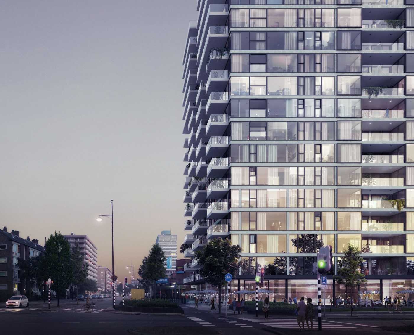 De lege kantoortoren wordt naar ontwerp van Mei architects and planners omgevormd tot glazen woontoren: De Generaal.