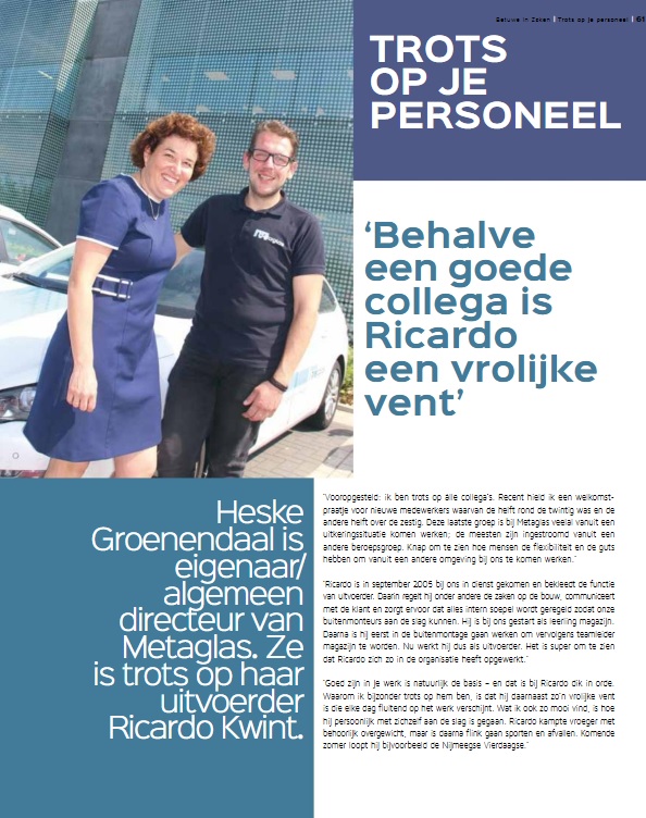 Heske Groenendaal is eigenaar/algemeen directeur van Metaglas. Ze is trots op haar uitvoerder Ricardo Kwint.